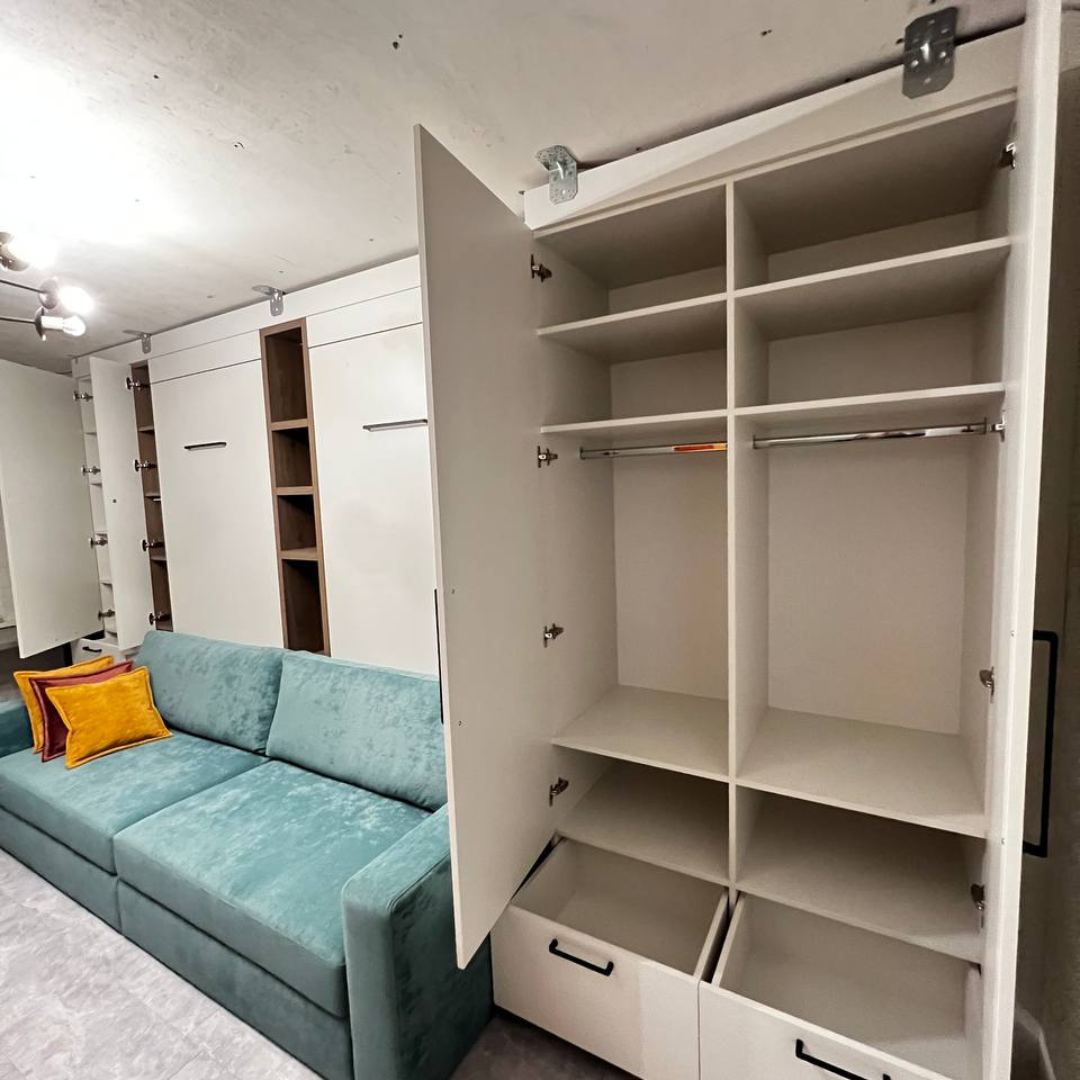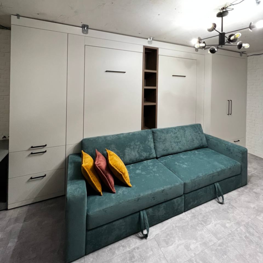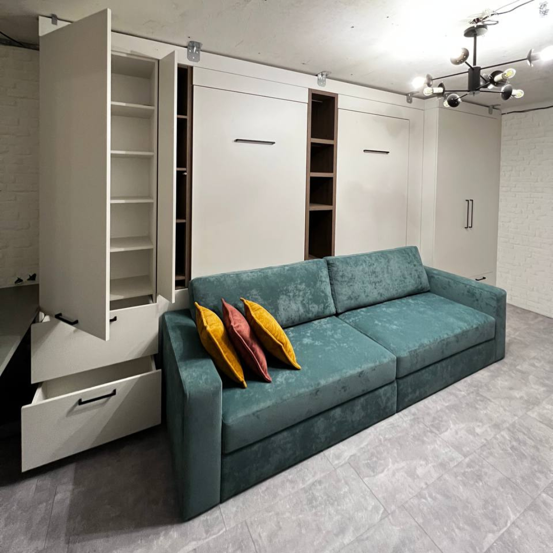 Надёжный и лёгкий механизм трансформации. Изготовление по индивидуальным размерам. Широкий выбор материалов.
