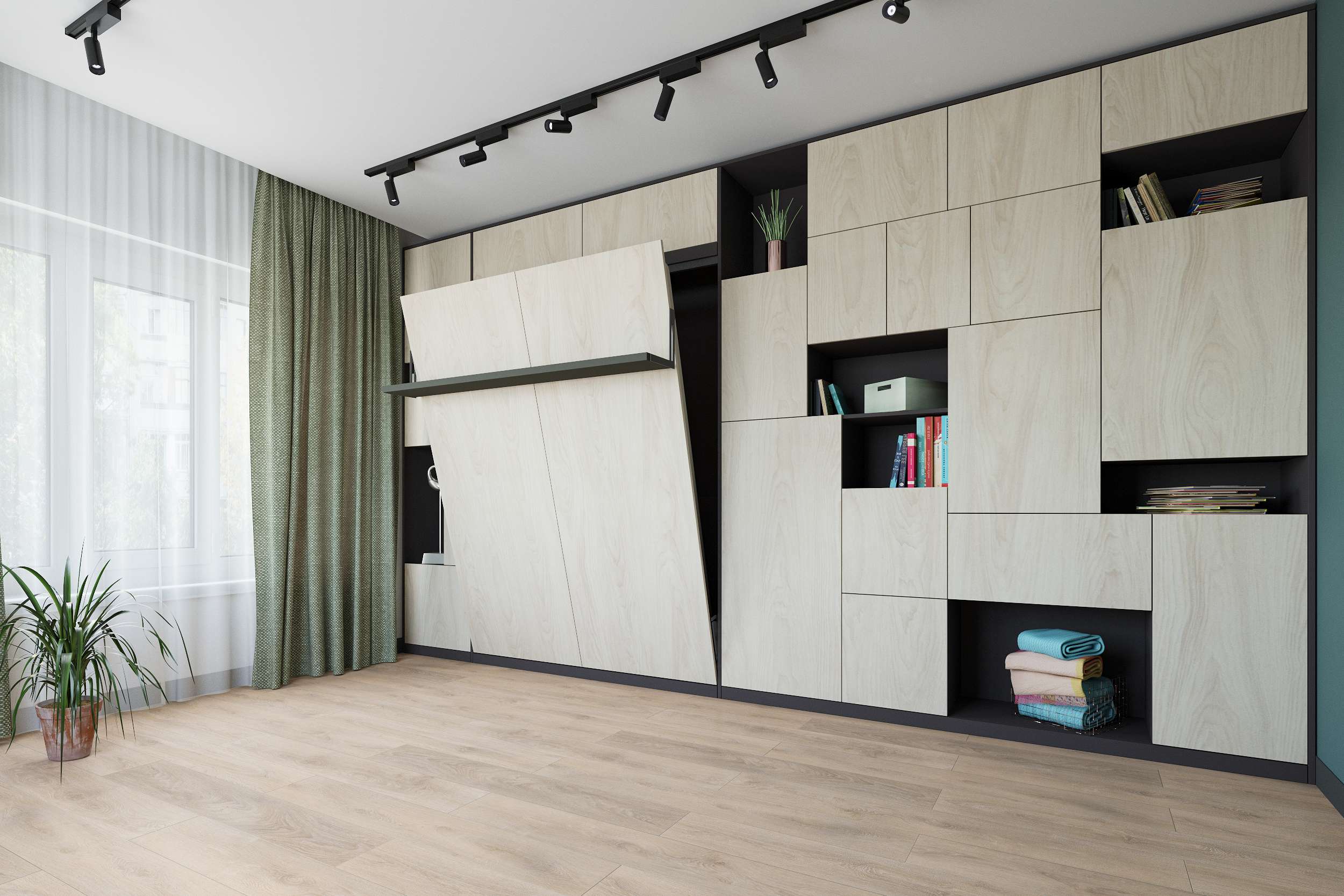 Встроенная откидная кровать с системой хранения