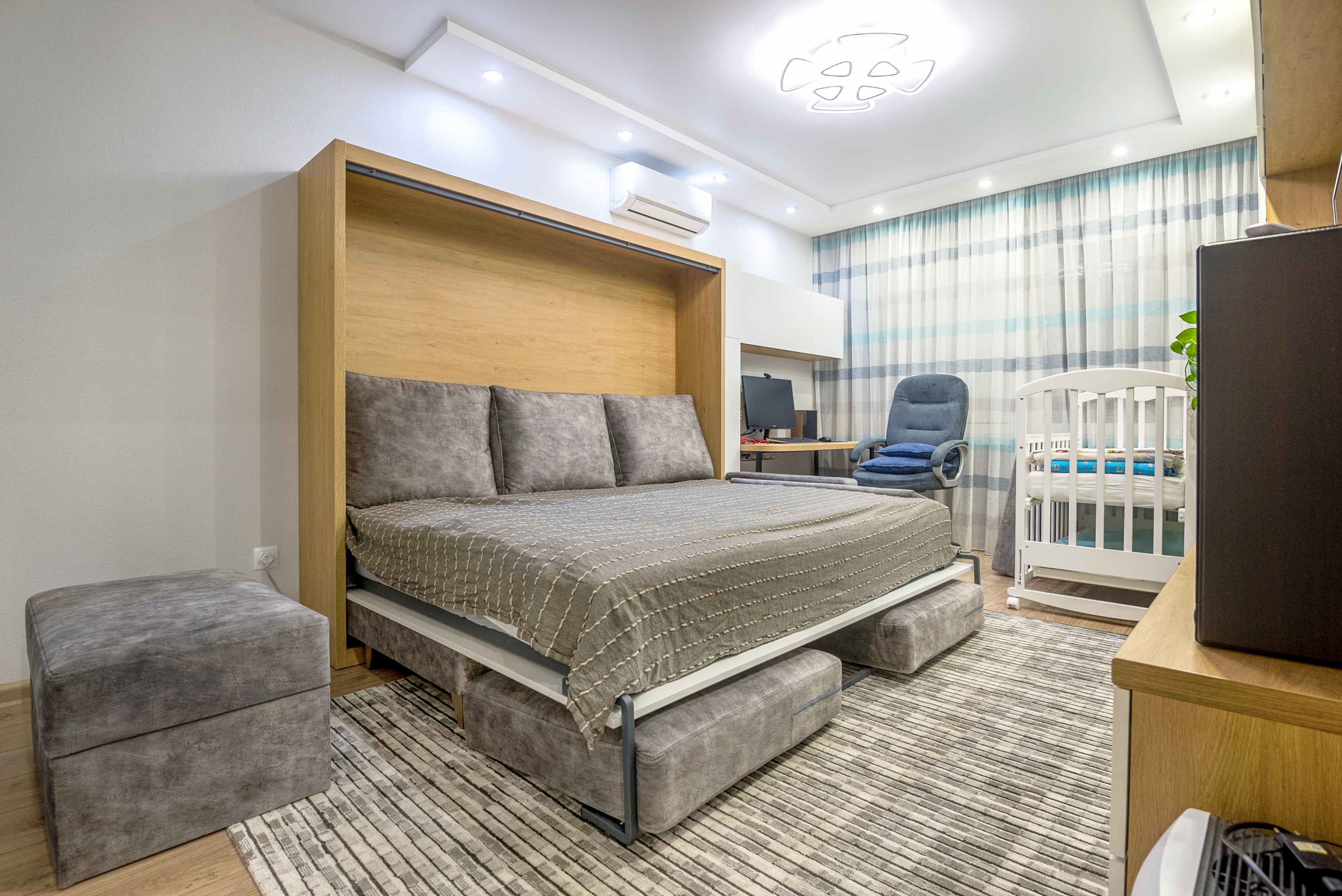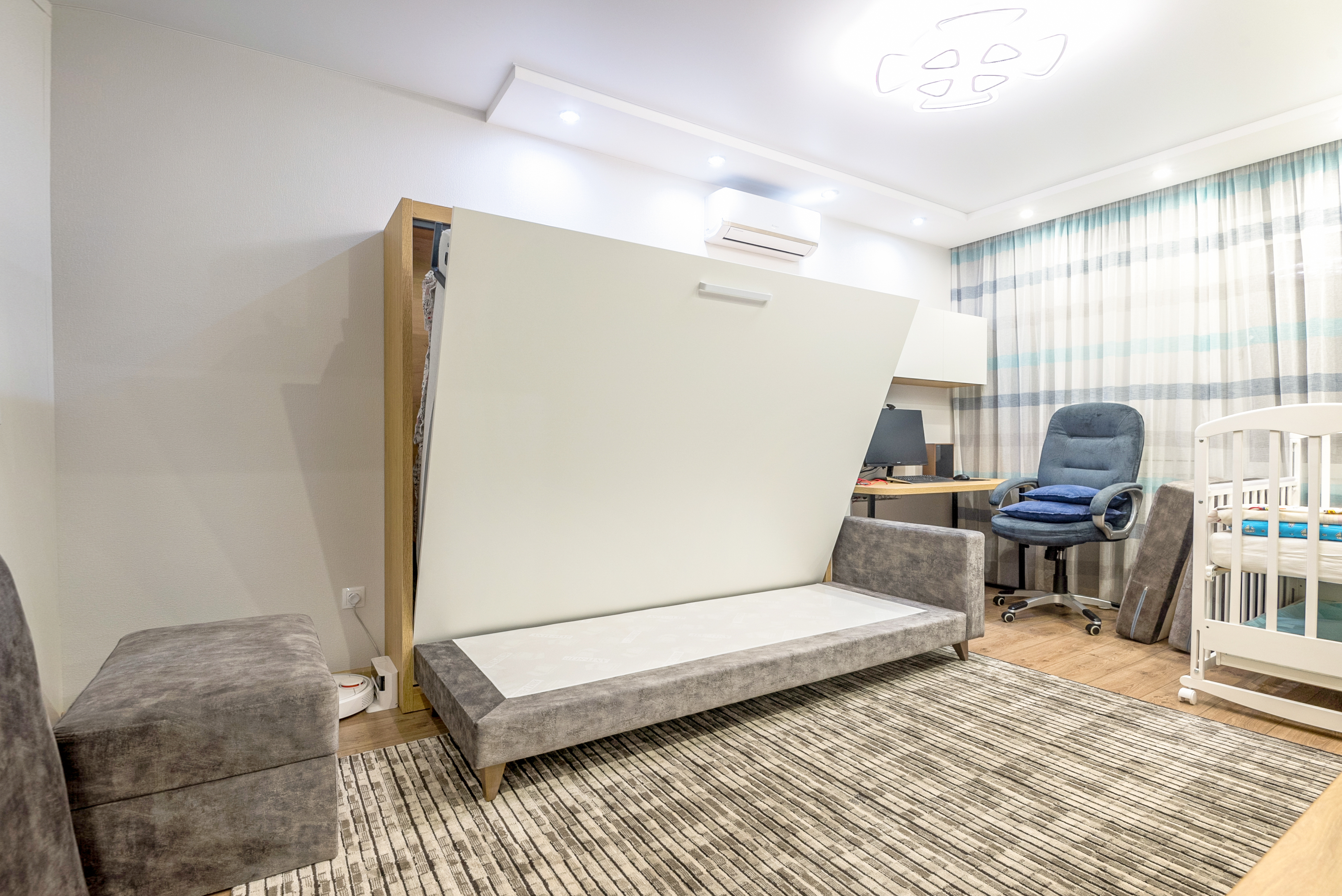 Надёжный и лёгкий механизм трансформации. Изготовление по индивидуальным размерам. Широкий выбор материалов.