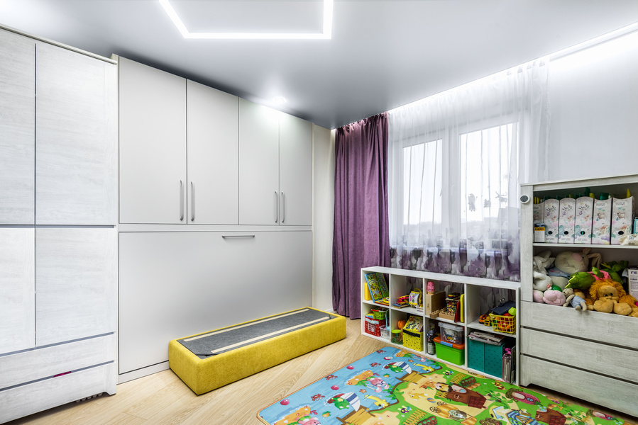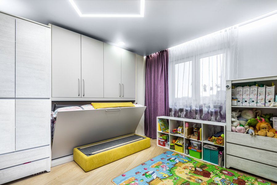 Кровать-трансформер с размером спального места 900x2000 мм, сложенная горизонтально. Механизм трансформации — Пинетти. Материал — ЛДСП Egger.