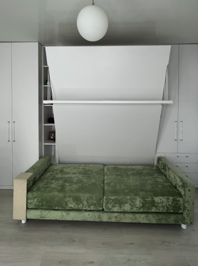 код 136857Кровать-трансформер 160х200 см с плавным ходом. Механизм INTRO-L SHELF. Диван со съемными подушками. Вместительные шкафы + выдвижные шуфляды. 100% качественный материал ЛДСП и фурнитура.
