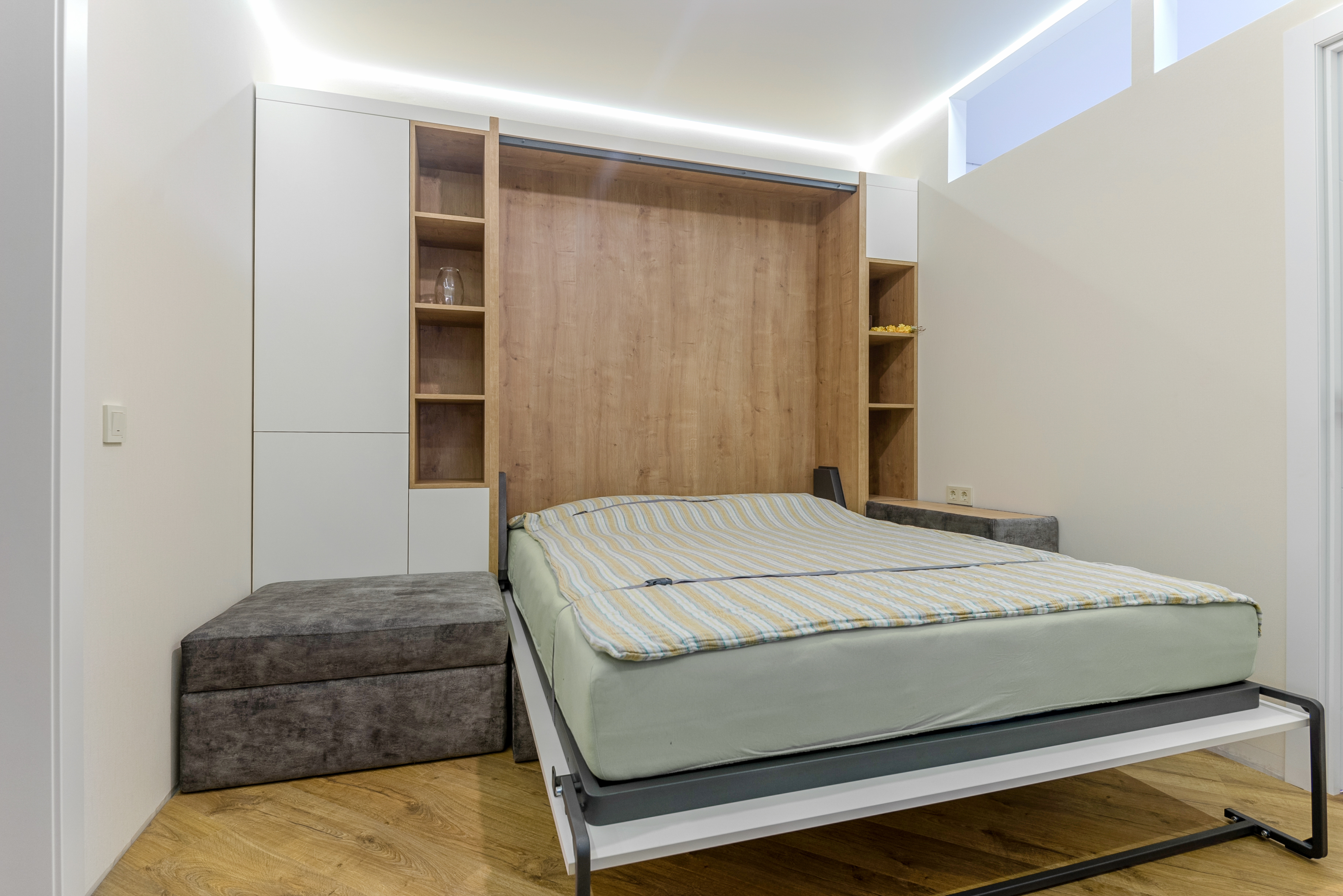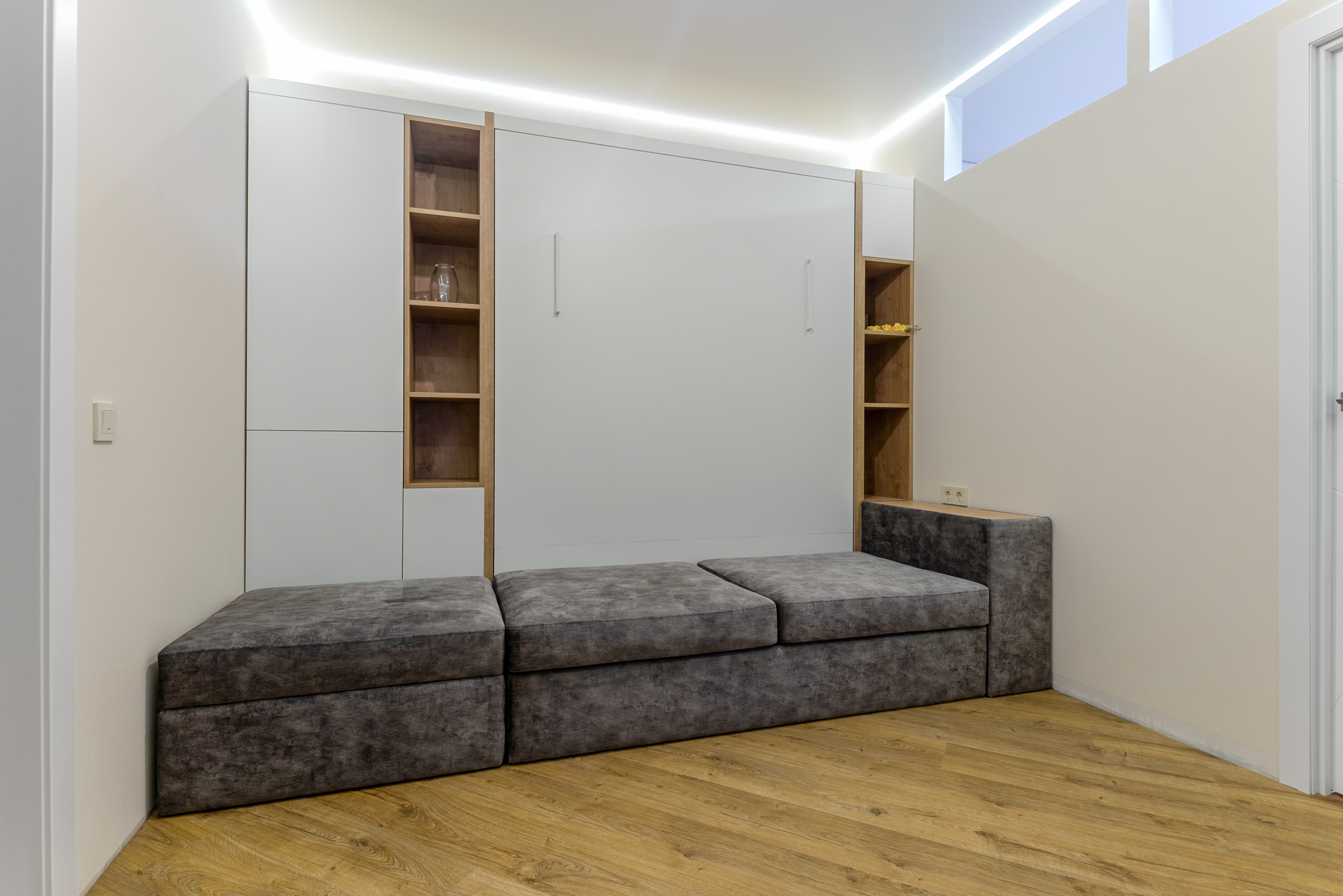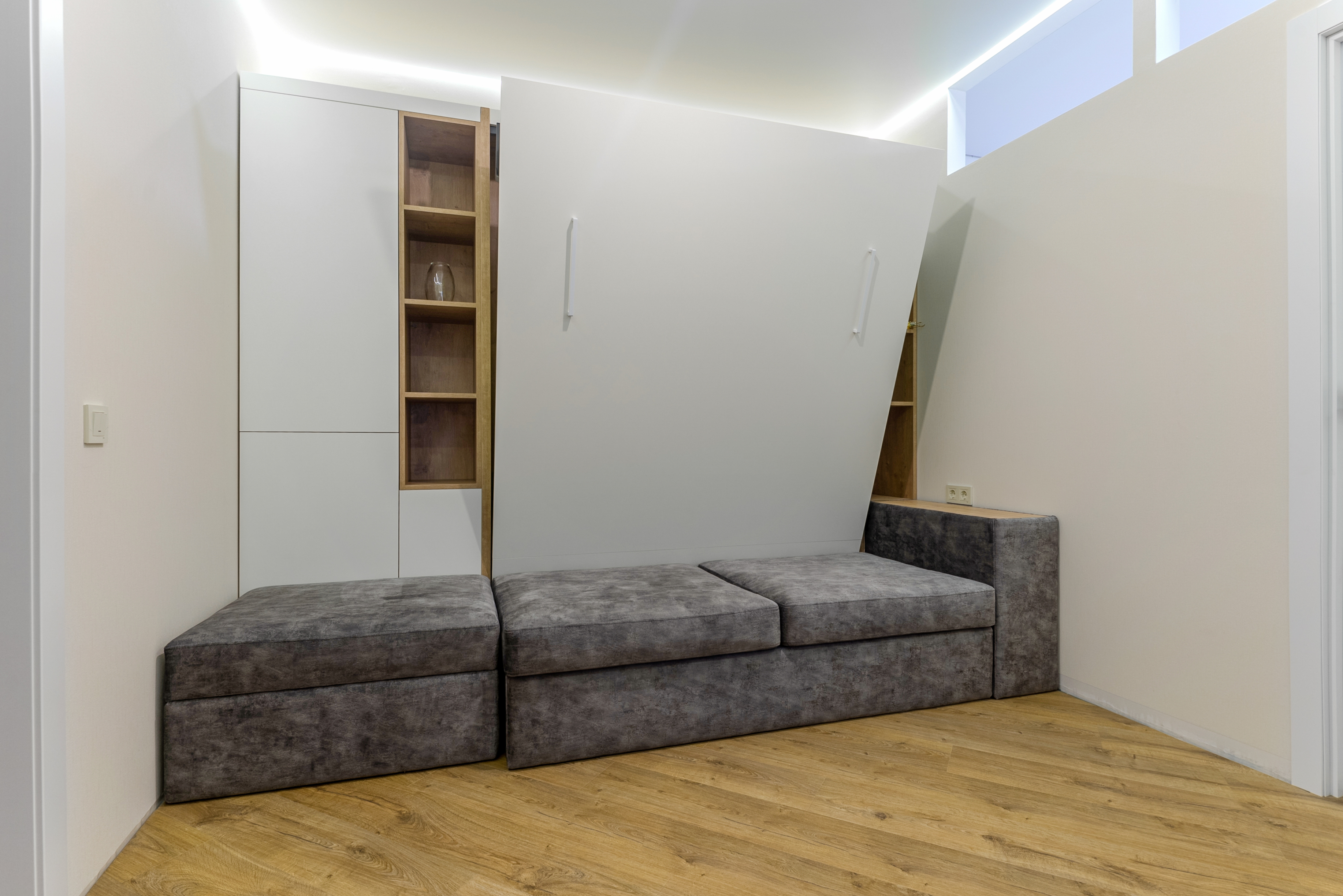 Надёжный и лёгкий механизм трансформации. Изготовление по индивидуальным размерам. Широкий выбор материалов.