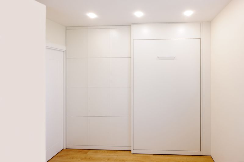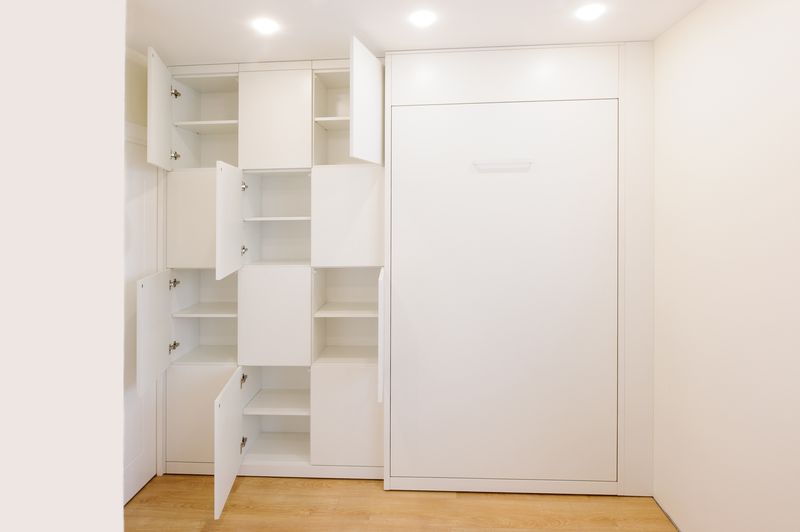 В вашем распоряжении удобный диван, шкаф-кровать и полочное пространство для хранения вещей.