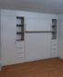 Шкаф-кровать из ЛДСП Egger с диваном, мягкой панелью в изголовье, открытыми и закрытыми зонами для хранения.