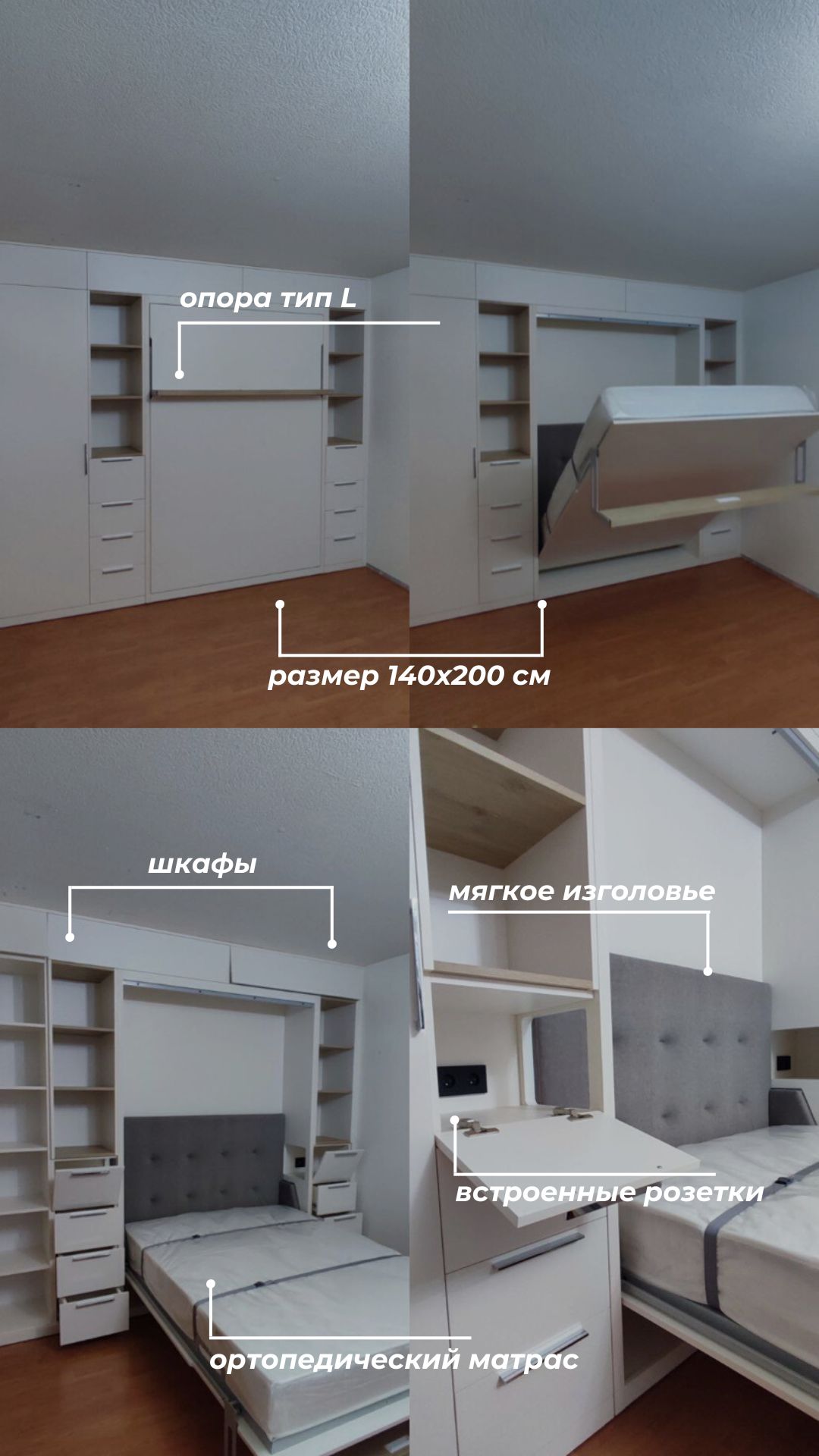 Надёжный и лёгкий механизм трансформации. Изготовление по индивидуальным размерам. Широкий выбор материалов.
