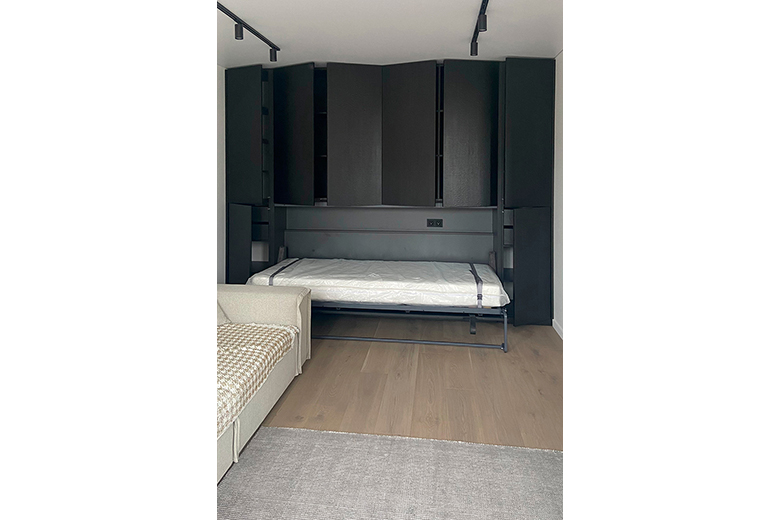 Встроенная мебель «Сварт» — это удобное и практичное решение для оптимизации пространства. Модель включает в себя горизонтальную шкаф-кровать и закрытые зоны хранения.