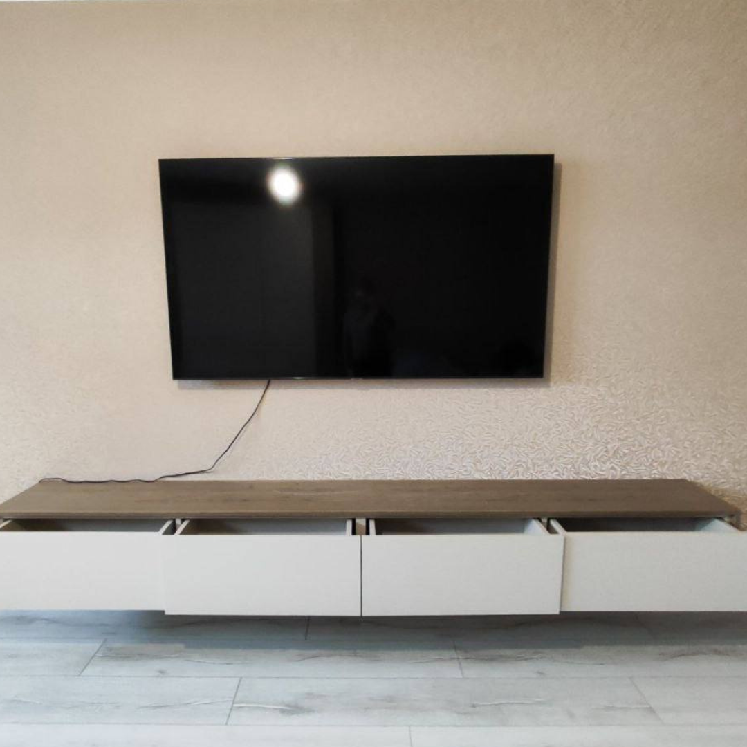 код 132895Кровать-трансформер 160х200 см. Мягкое изголовье в ткани. Шкаф. ТВ-тумба. Врезные розетки.