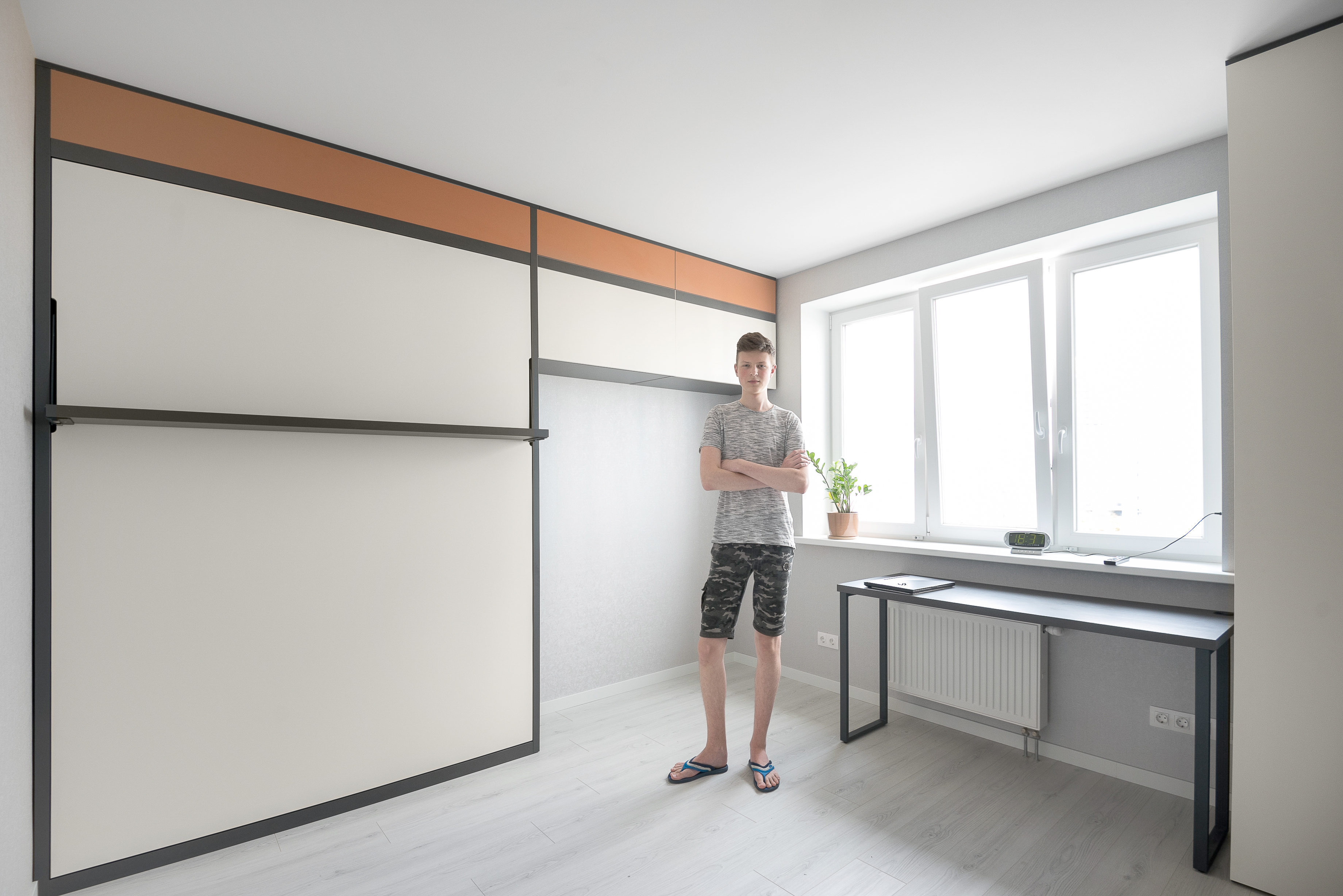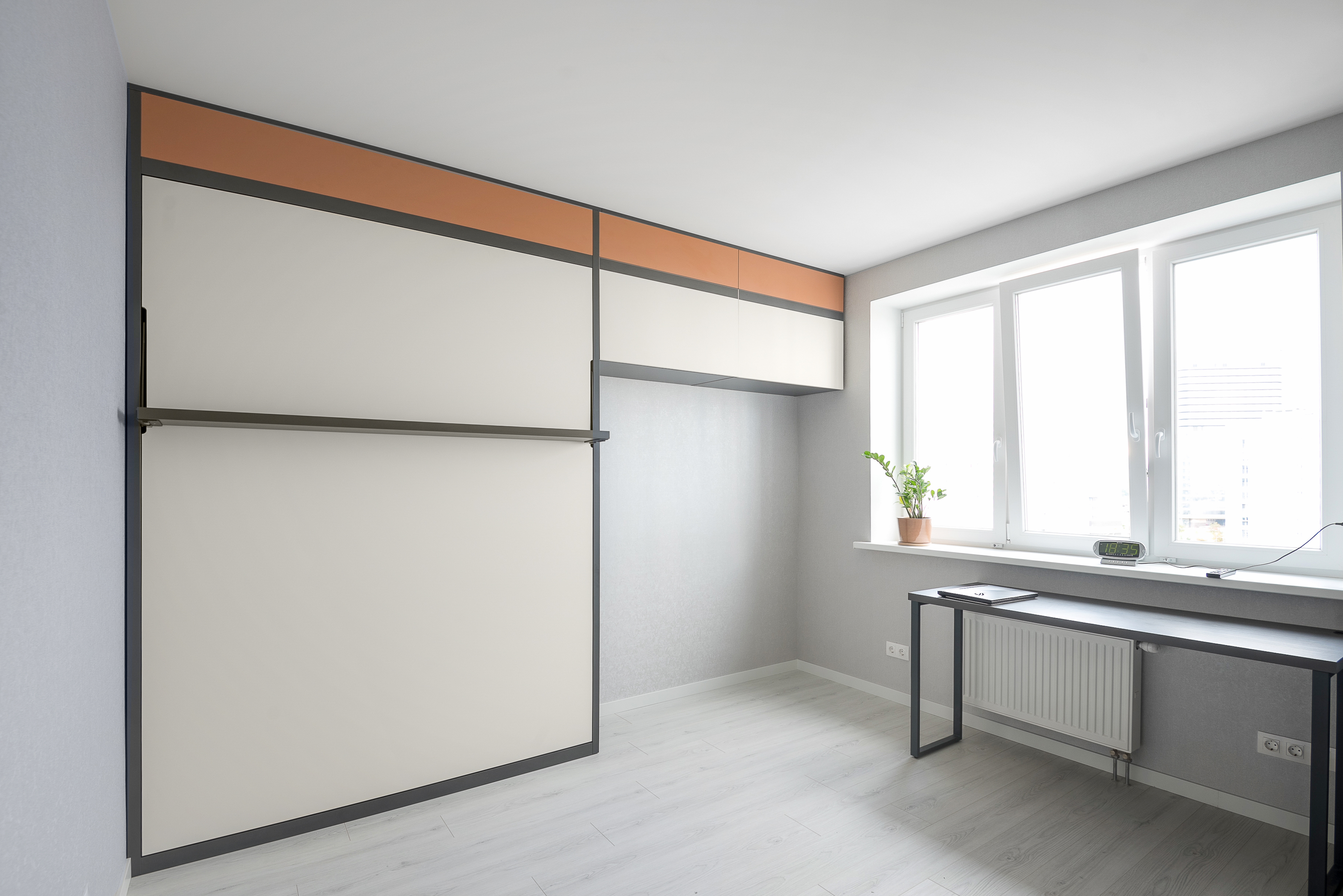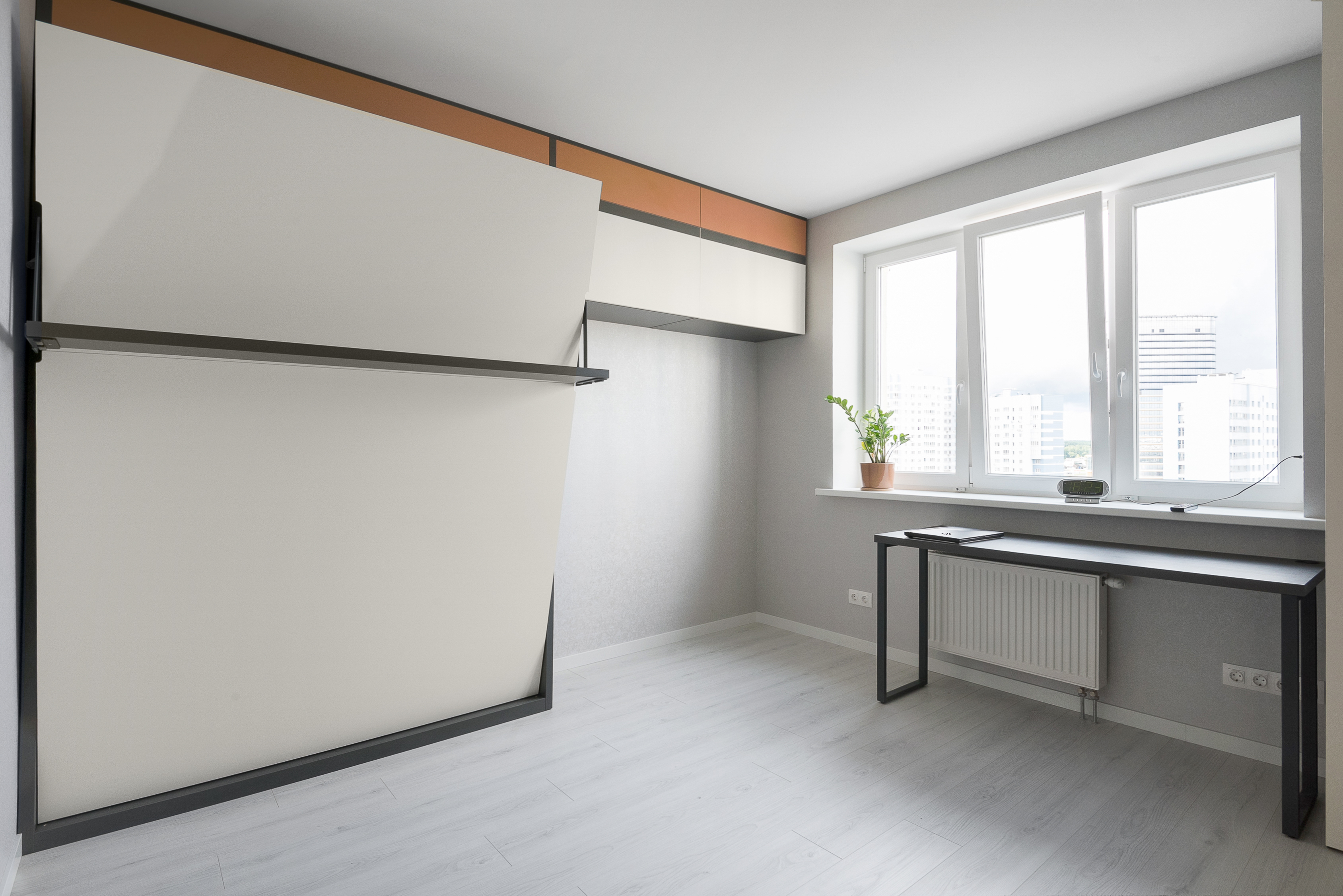 Мебель-трансформер во всю стену. Надёжный и лёгкий механизм. Изготовление по индивидуальным размерам.