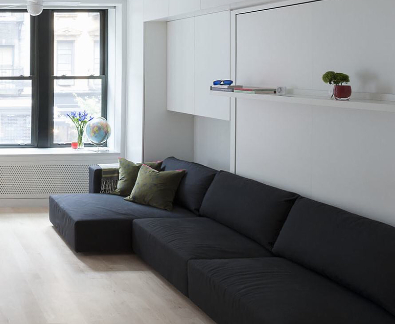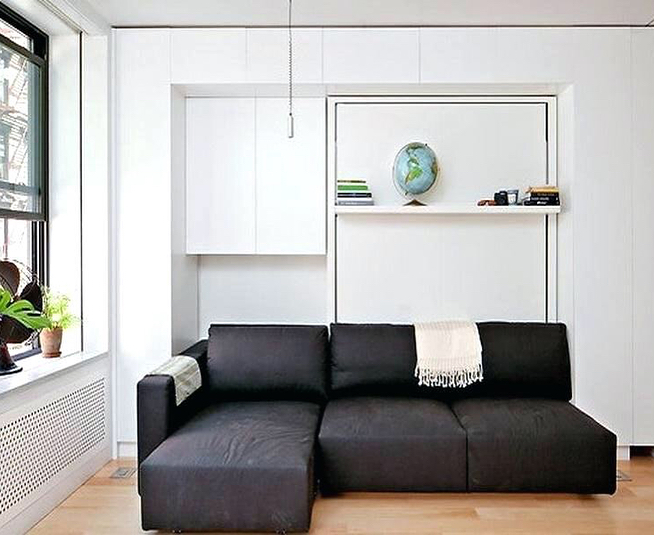 Откидная кровать экономит много пространства в комнате.