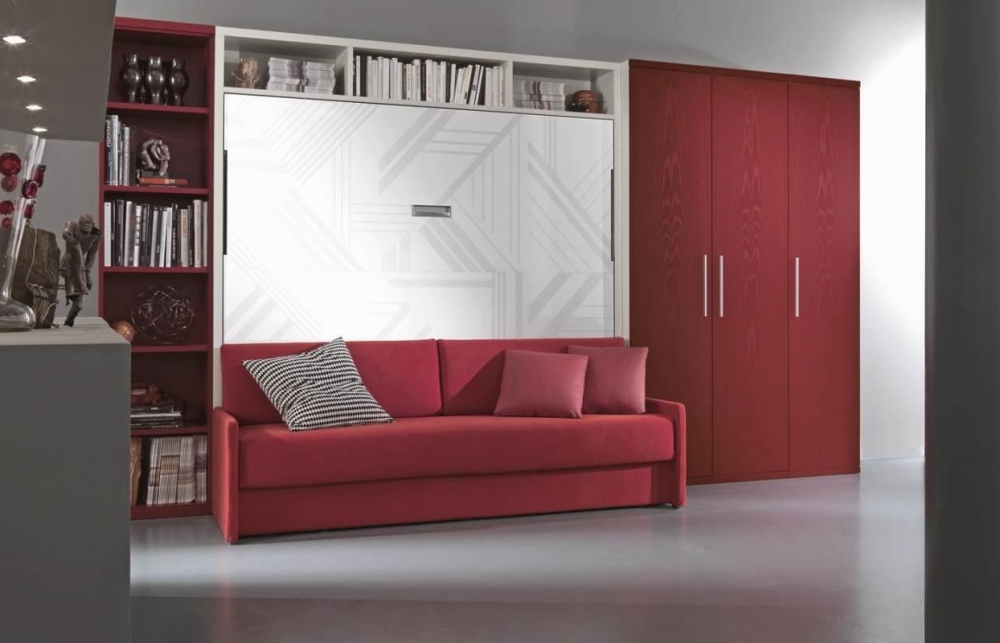 Мебель-трансформер со шкафом-кроватью горизонтального сложения. Включает шкаф, зоны хранения, диван и консоль под TV.
