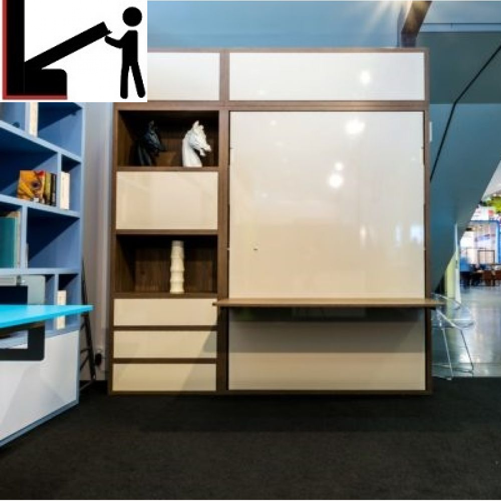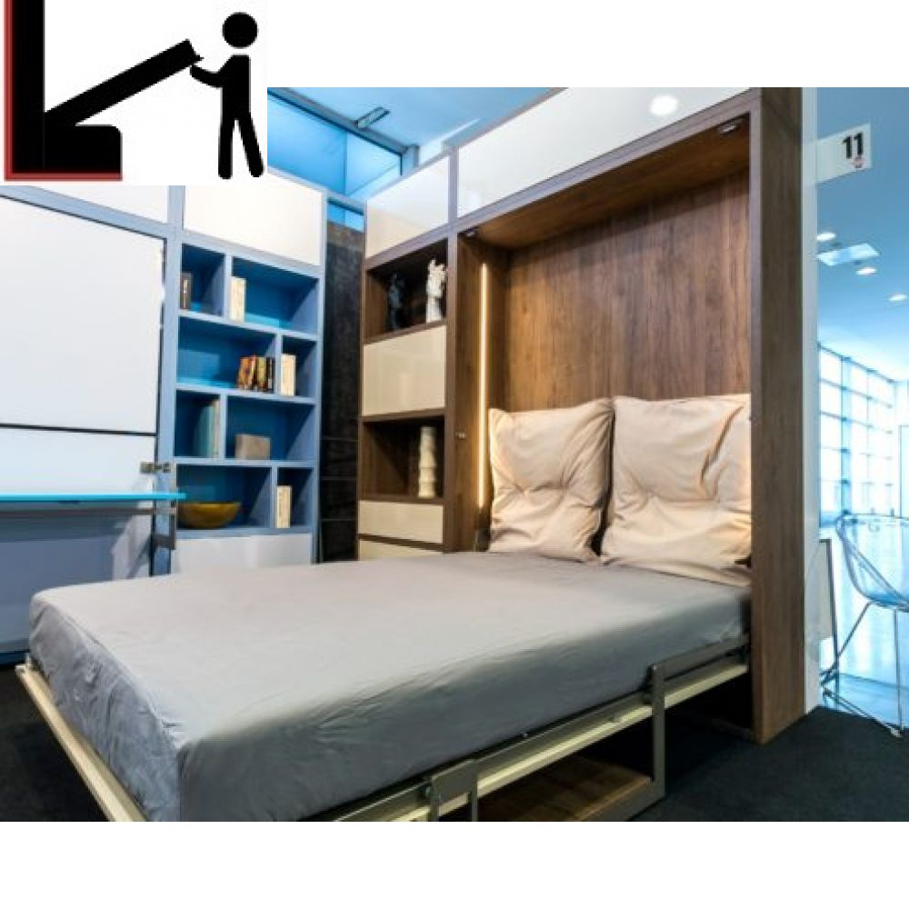 Шкаф-кровать из ЛДСП Эггер вертикального сложения. Включает закрытые зоны хранения вокруг кровати.