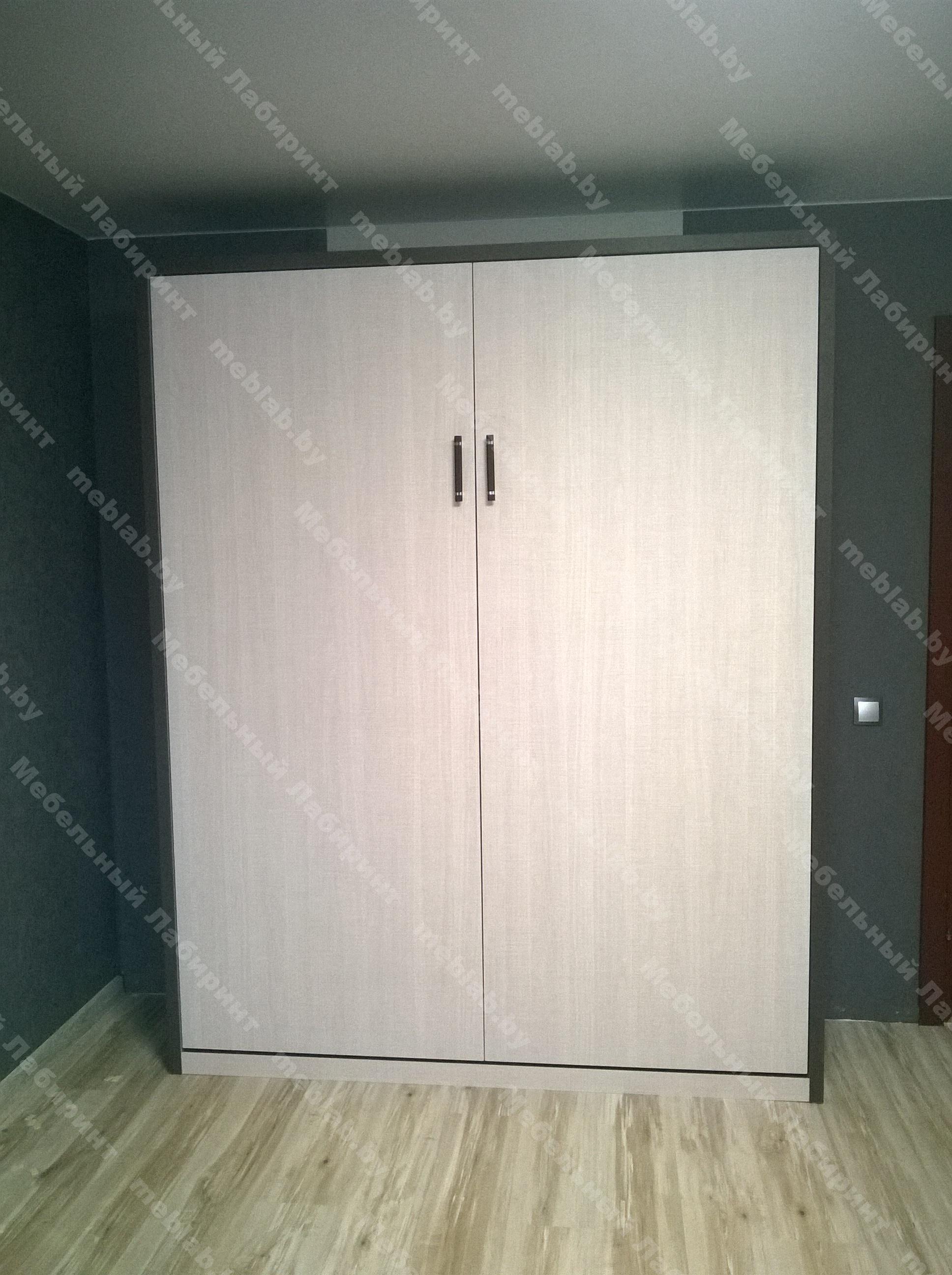 код 89923Шкаф-кровать с фасадом под светлое дерево в темном корпусе венге.