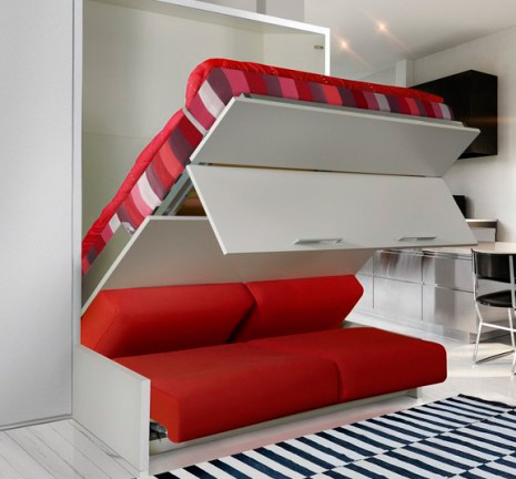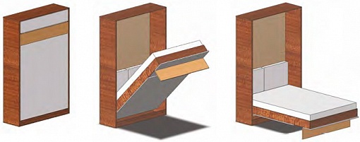 Подъемная откидная кровать-трансформер, встроенная в шкаф как для взрослых так и для детей.