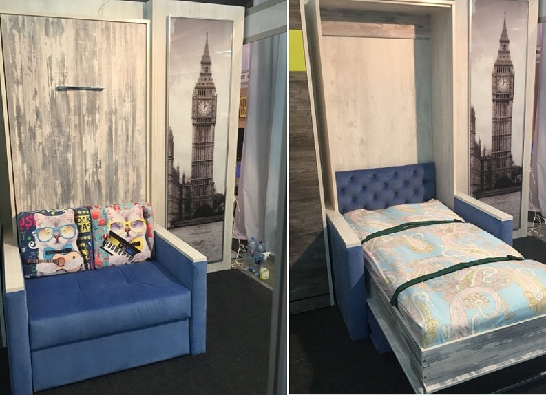 Мебель-трансформер со шкафом-кроватью горизонтального сложения.
