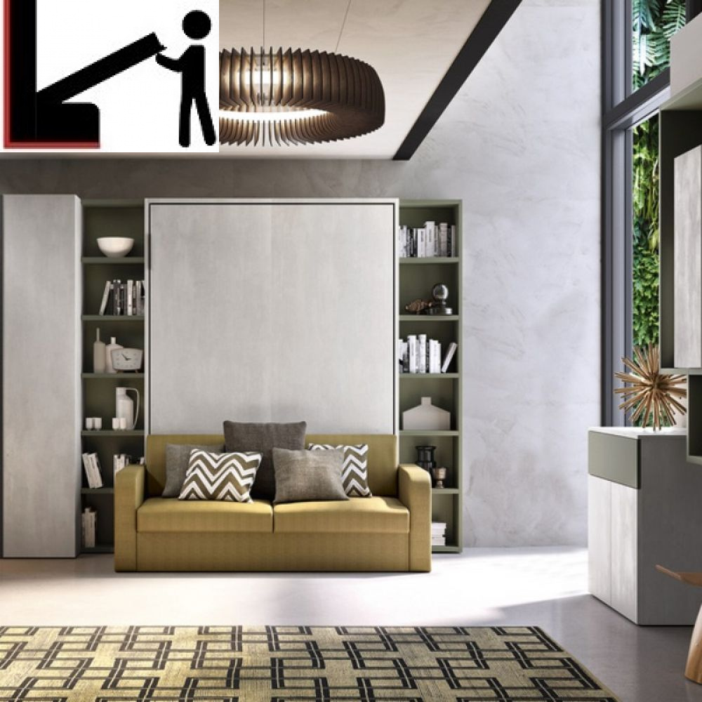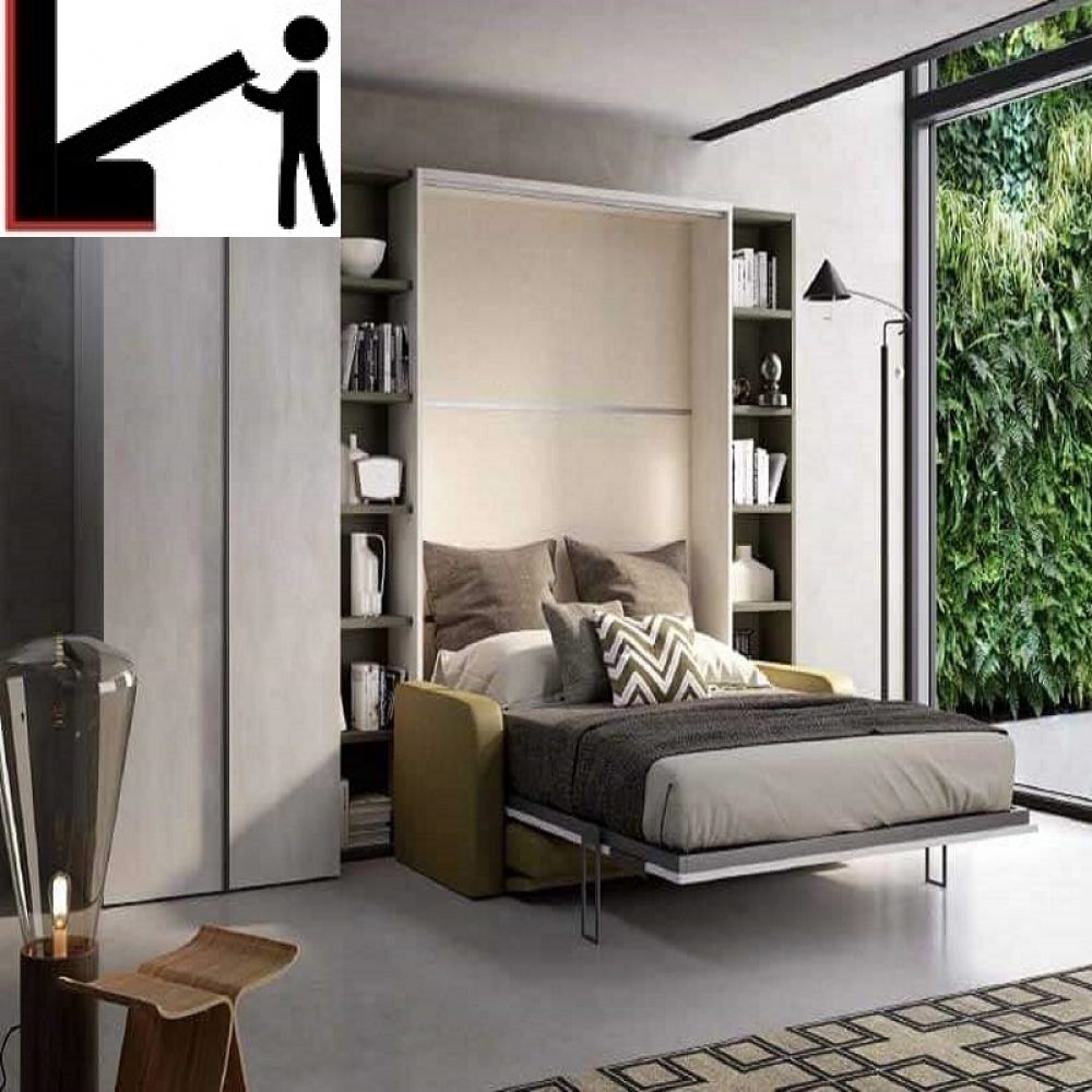 Подъемная откидная кровать-трансформер, встроенная в шкаф как для взрослых так и для детей.