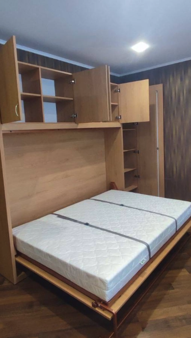 Мебель-трансформер со шкафом-кроватью горизонтального сложения. Включает шкаф, зоны хранения, диван и консоль под TV.