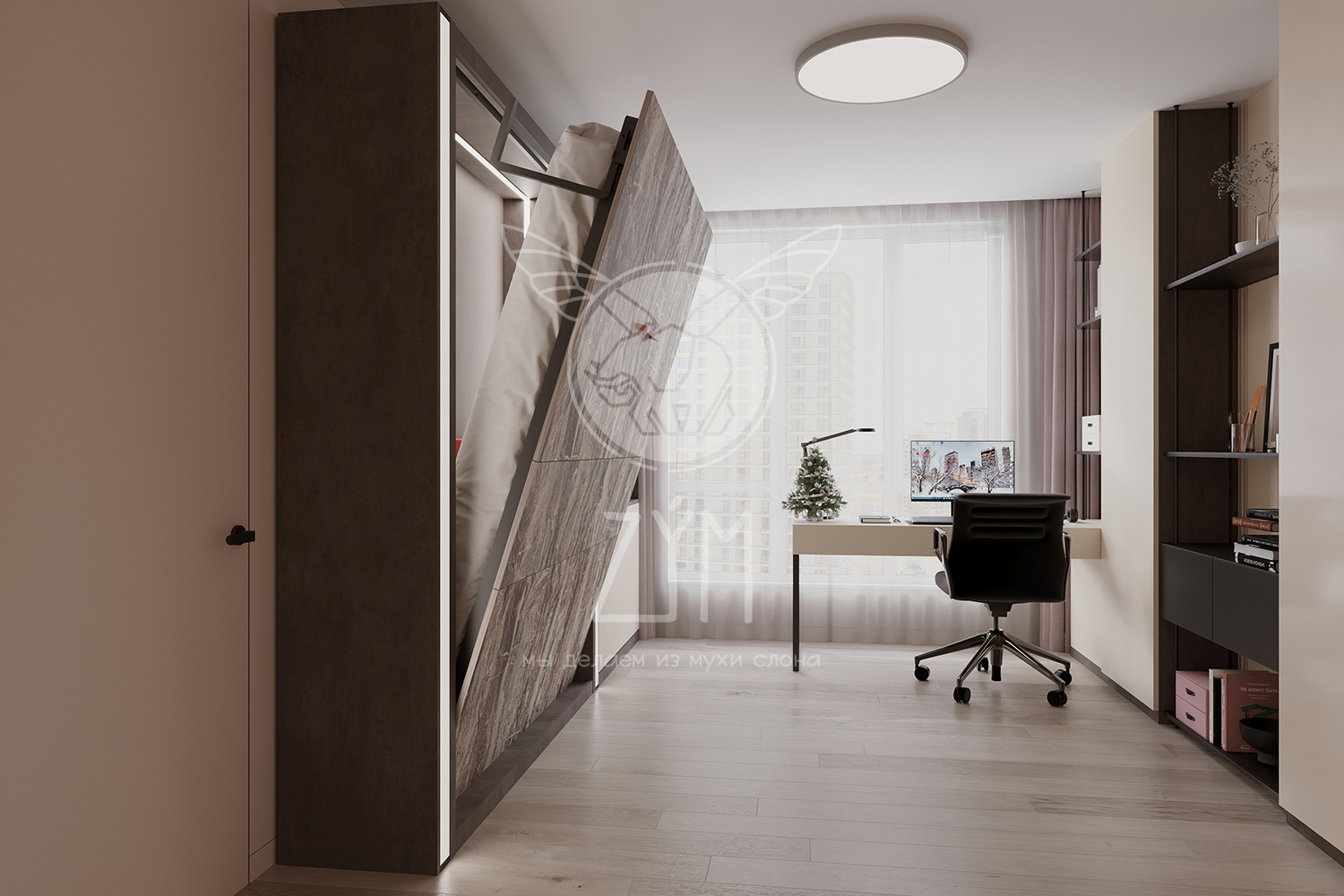 Односпальная кровать-трансформер. Совмещение со шкафом-купе. Практичная конструкция. Бесплатная консультация и выезд дизайнера. Фирменная рассрочка. Изготовление до 25 дней.