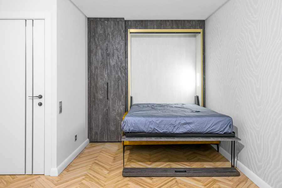 Шкаф-кровать в скандинавском стиле. Вертикальная трансформация. Надёжный и лёгкий механизм. Изготовление по индивидуальным размерам. Широкий выбор материалов.
