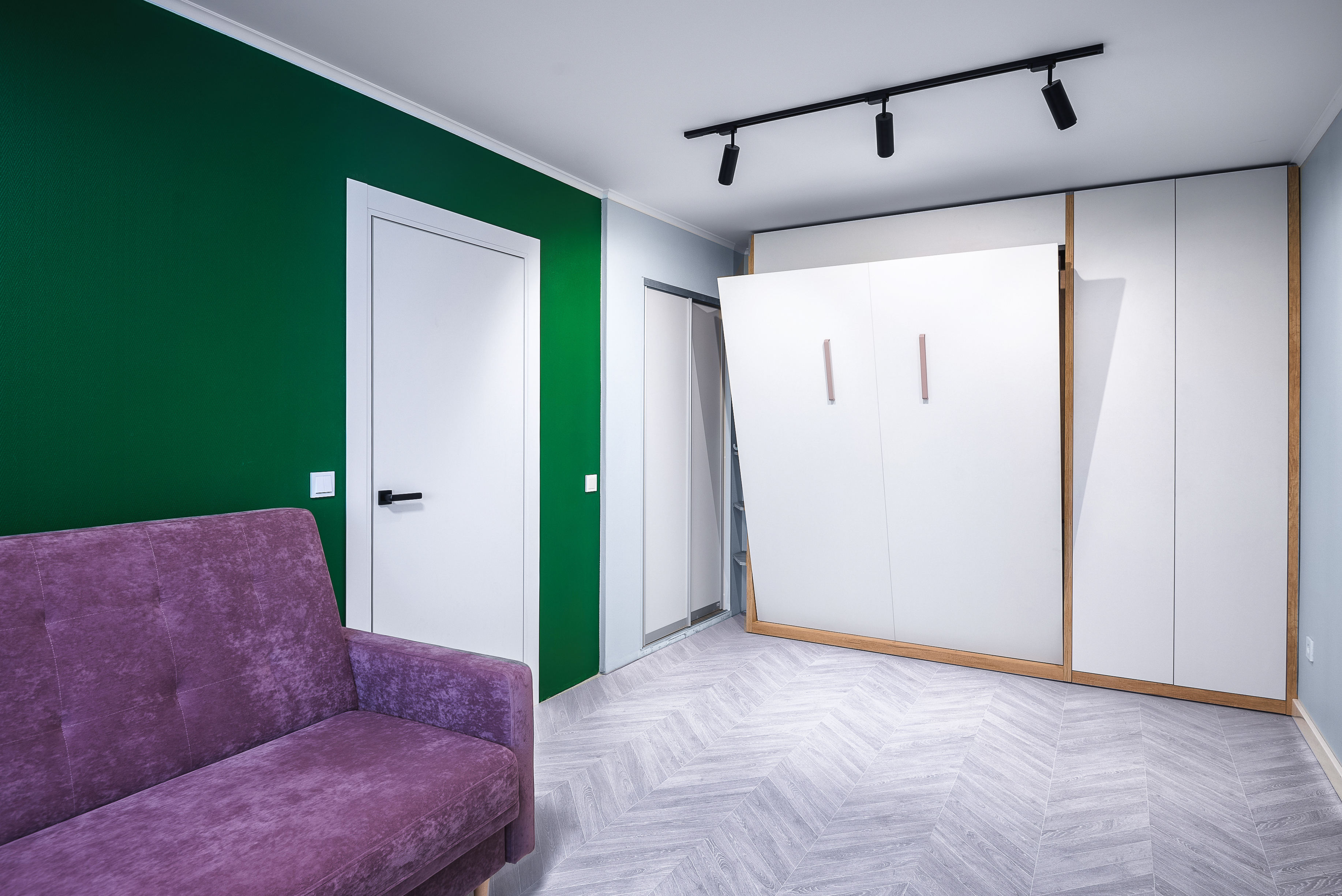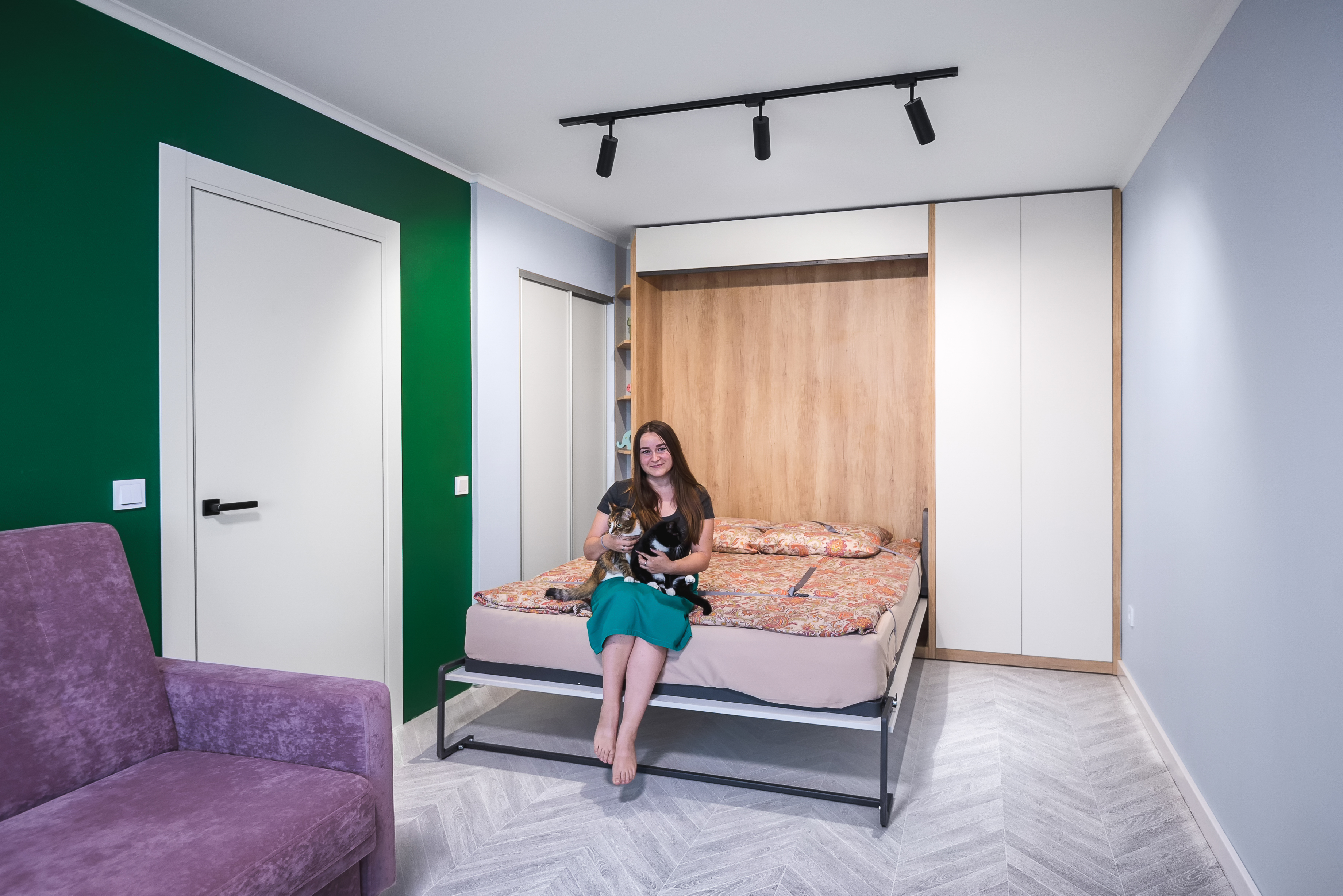 Кровать-трансформер, размер спального места 1600х2000 мм с механизмом Гудини вертикального сложения. Материал изготовления ДСП Egger.