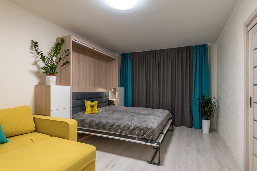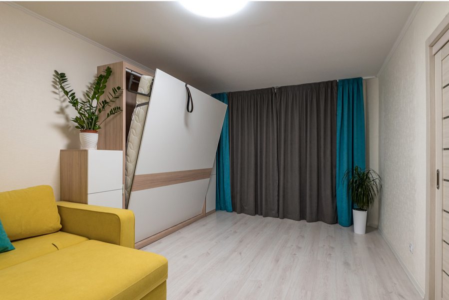 Мебель-трансформер со шкафом-кроватью горизонтального сложения.