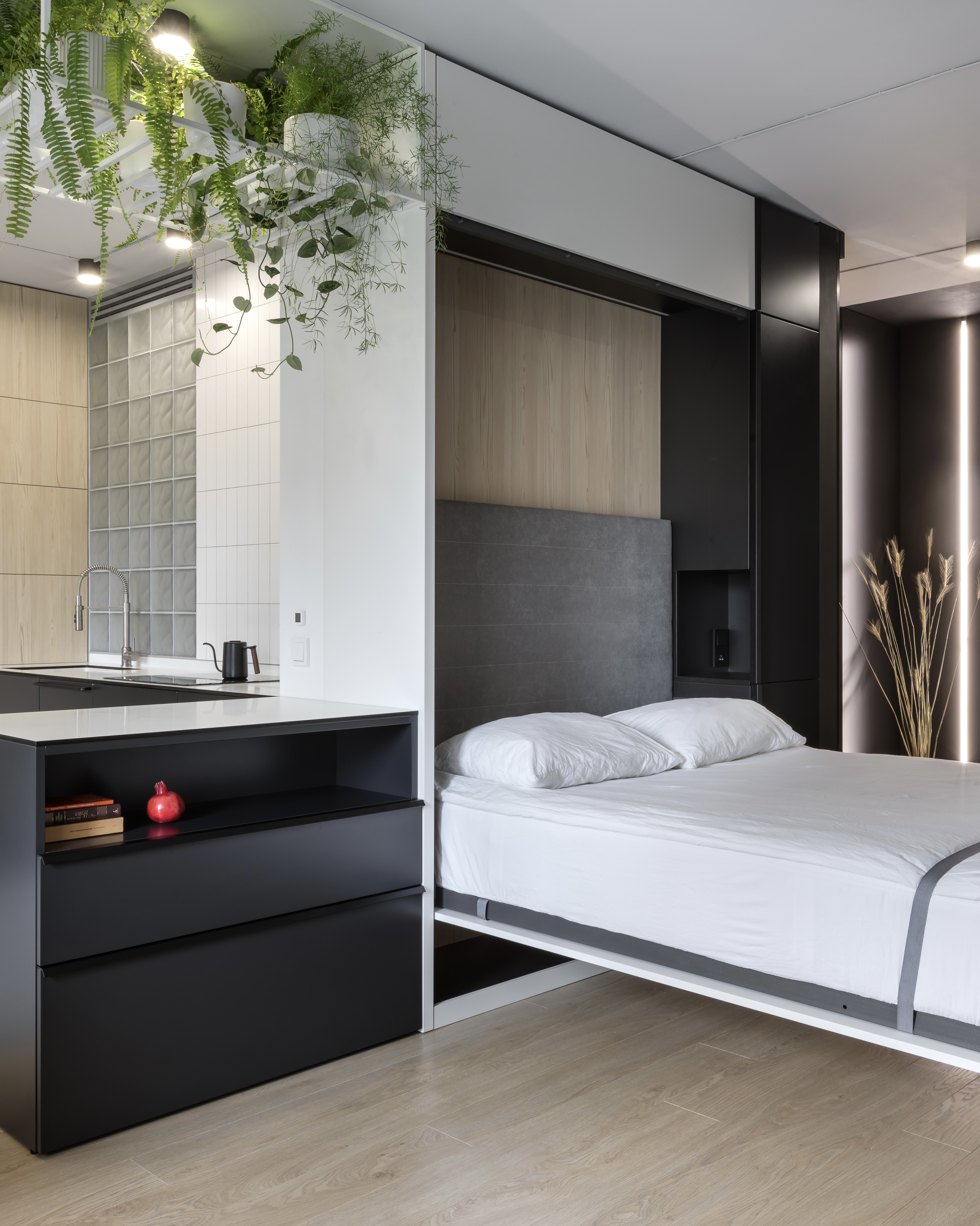 Шкаф-кровать в стиле минимализм с «парящим» диваном