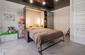 Кровать-трансформер с горизонтальным механизмом раскладывания встроена в шкаф с закрытыми полками в пределах доступности ребенка. Материал детской - крашенный МДФ.