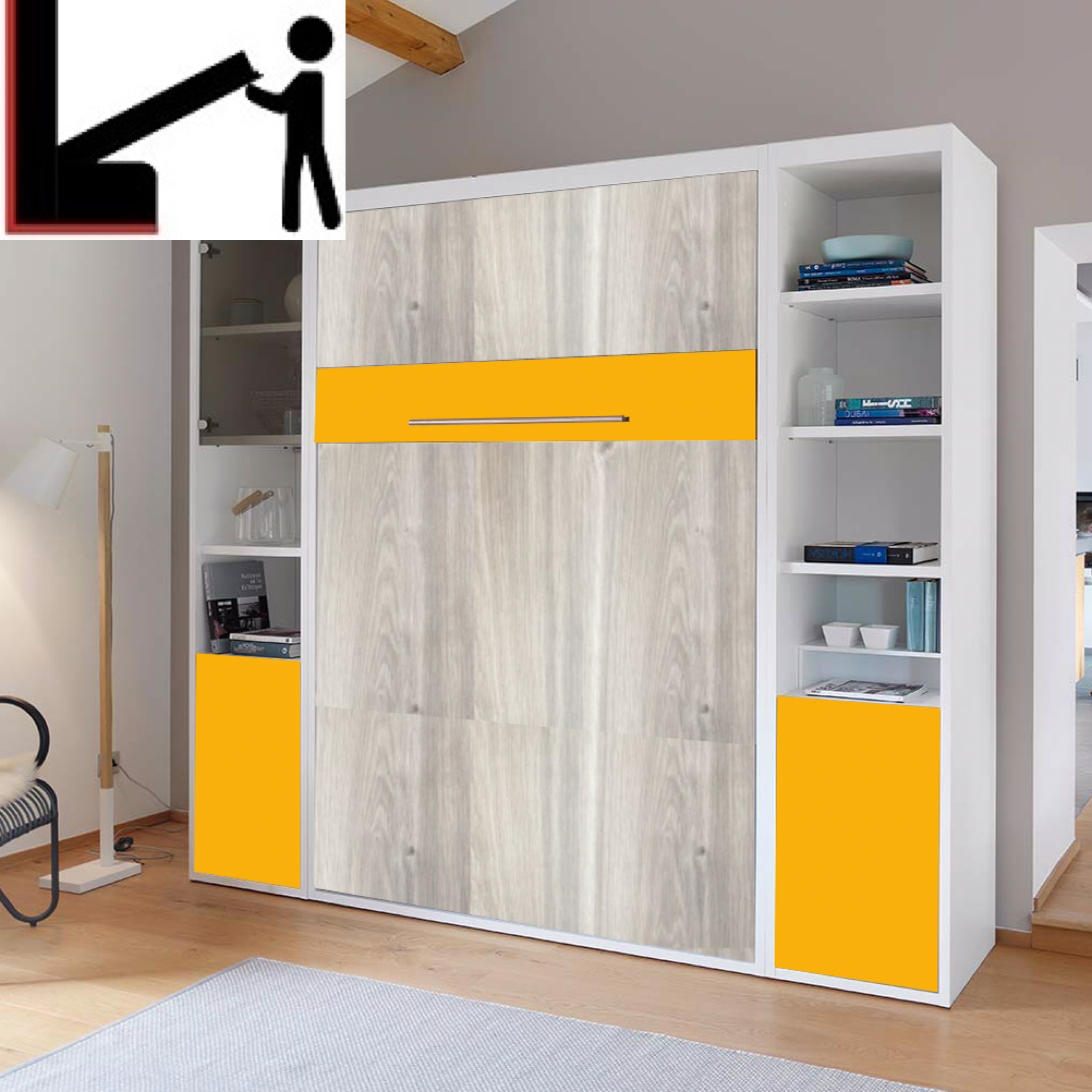 Шкаф-кровать с оранжевыми вставками