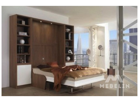 Мебель-трансформер со шкафом-кроватью горизонтального сложения. Включает шкаф, зоны хранения, диван и консоль под TV.