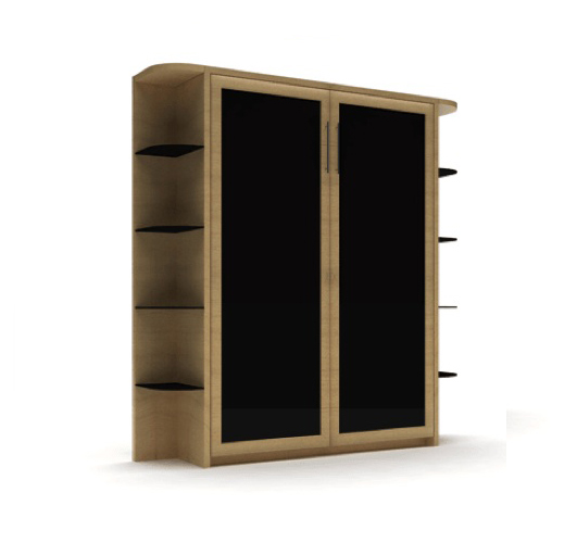 Шкаф-кровать выполнен в классическом варианте с черными стеклянными вставками. Модель изготовлена из высококачественных экологических чистых материалов, что обеспечивает высокую надежность и длительный срок службы.
