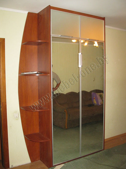 код 48066Наличие радиусных полок и зеркала. Сверху закрытые полки.