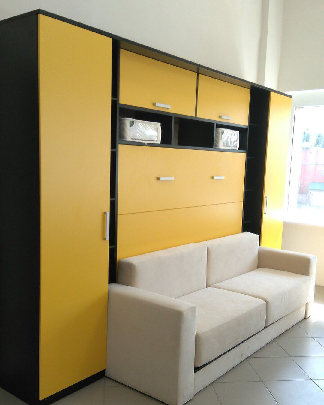 Надёжный и лёгкий механизм трансформации. Изготовление по индивидуальным размерам. Широкий выбор материалов.