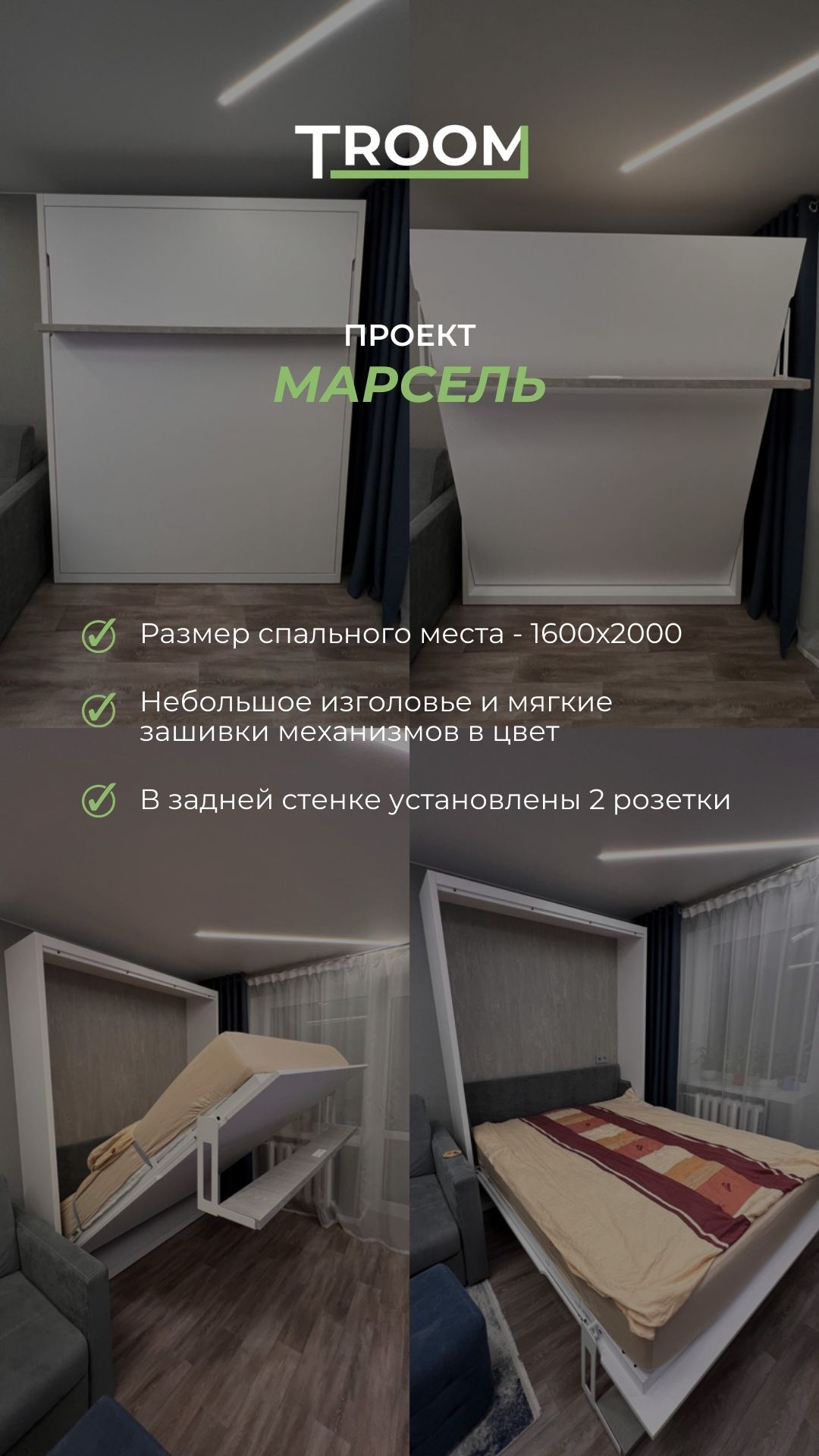 - Двуспальная кровать-трансформер 160*200 см вертикального типа.