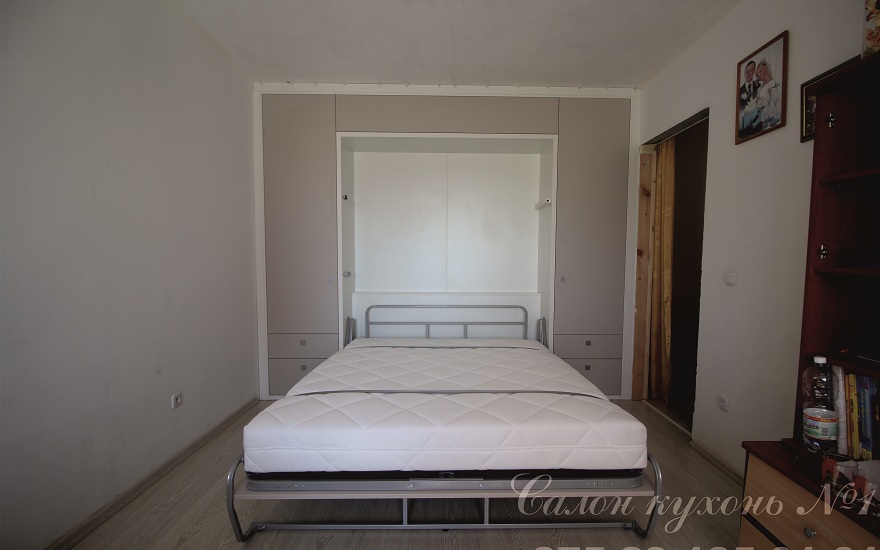 Подъемная откидная кровать-трансформер, встроенная в шкаф как для взрослых так и для детей.