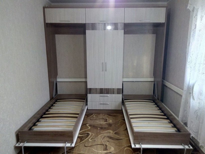 - Функциональность. Шкаф оснащён двумя вертикальными кроватями, что идеально подходит для детских комнат или гостевых спален.