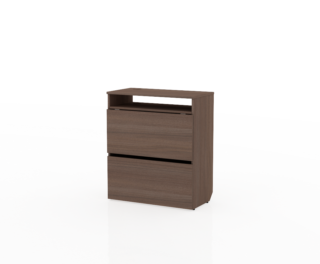 Стильный дизайн, большое количество удобных полок. Две закрытые полки сверху.