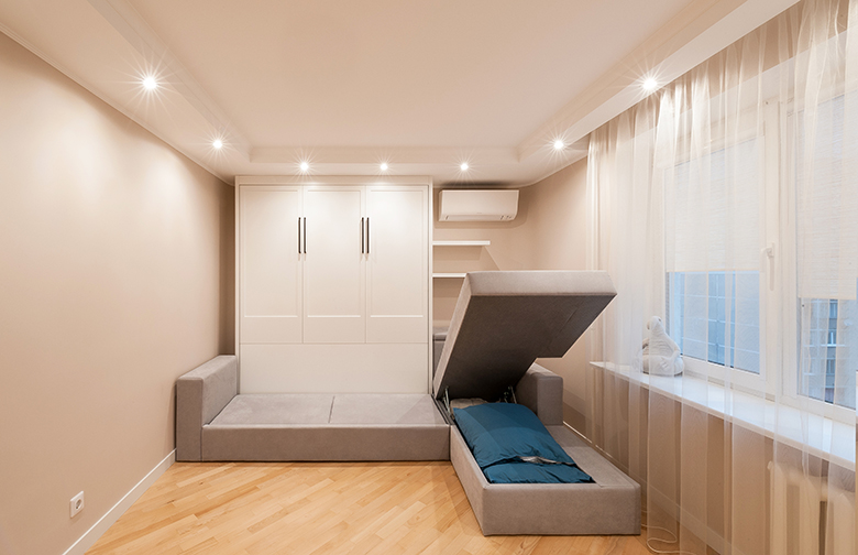 Надёжный и лёгкий механизм трансформации. Изготовление по индивидуальным размерам. Широкий выбор материалов.