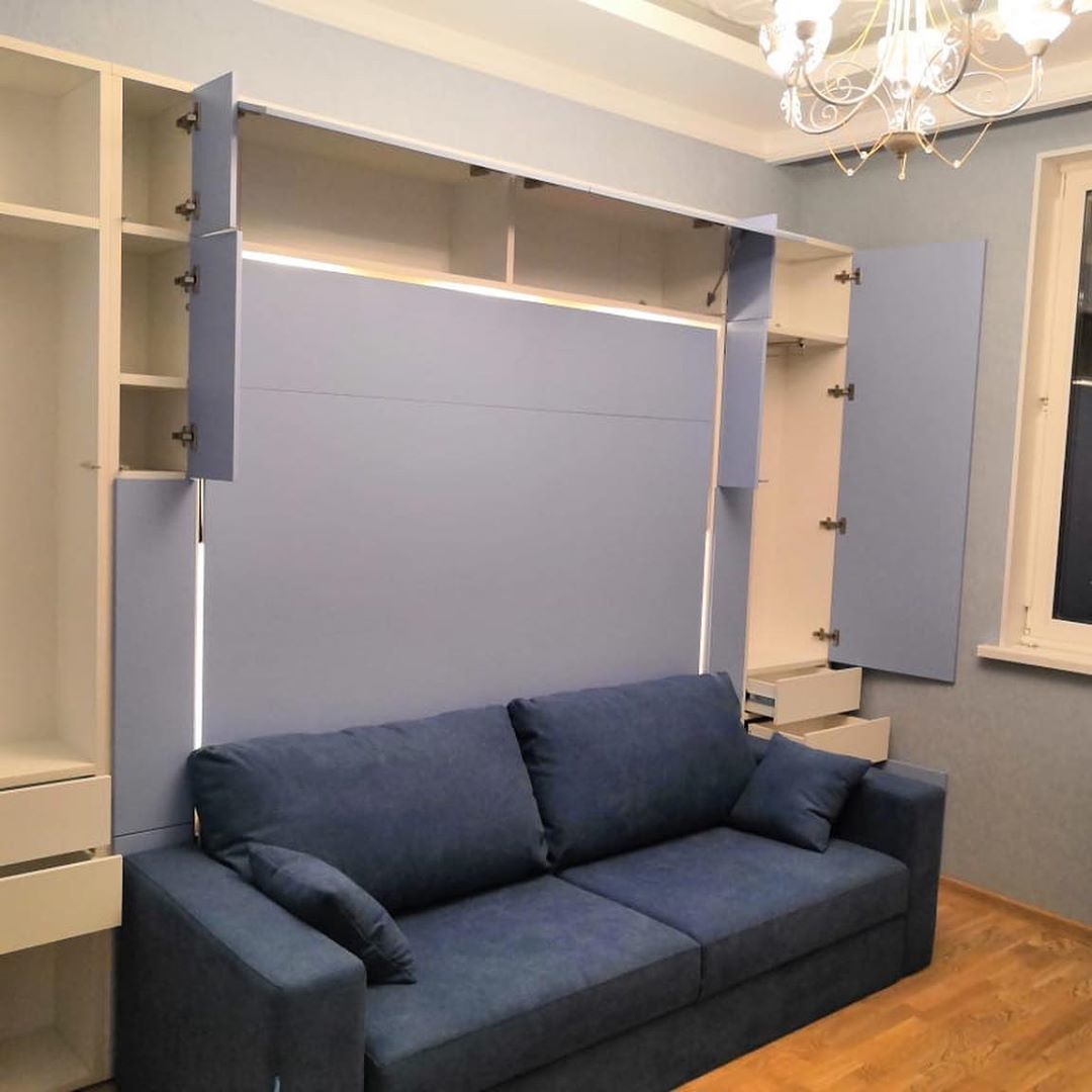 Надёжный и лёгкий механизм трансформации. Изготовление по индивидуальным размерам. Широкий выбор материалов.