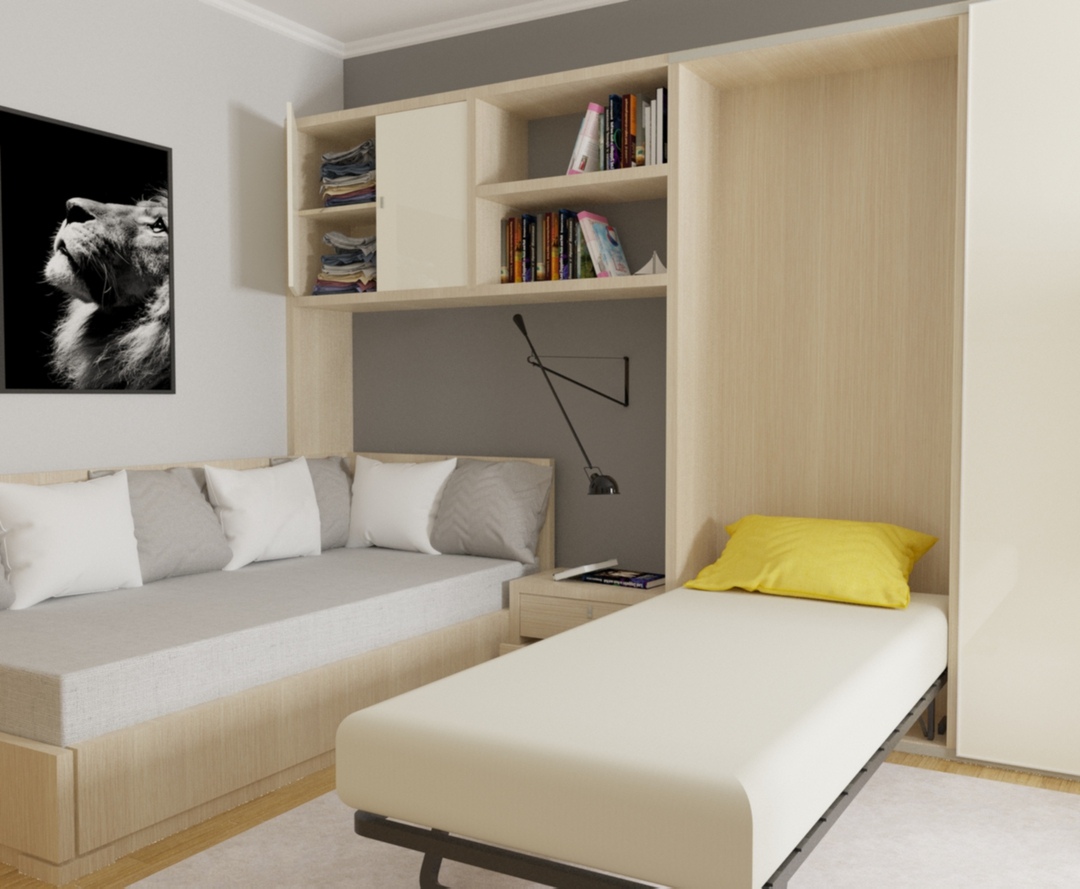 Мебель-трансформер во всю стену. Надёжный и лёгкий механизм. Изготовление по индивидуальным размерам.