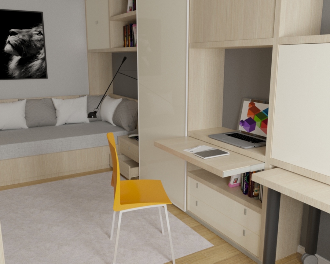 Практичная шкаф-кровать идеально подойдет для детской или подростковой комнаты. Она обладает двумя комфортными рабочими зонами, независимыми друг от друга. Удобная кровать, несколько шкафов для книг, удобный стол и пространство для компьютера - это все удобная шкаф-кровать в комнату. Модель выполнена в натуральном цвете, который визуально расширяет комнату.