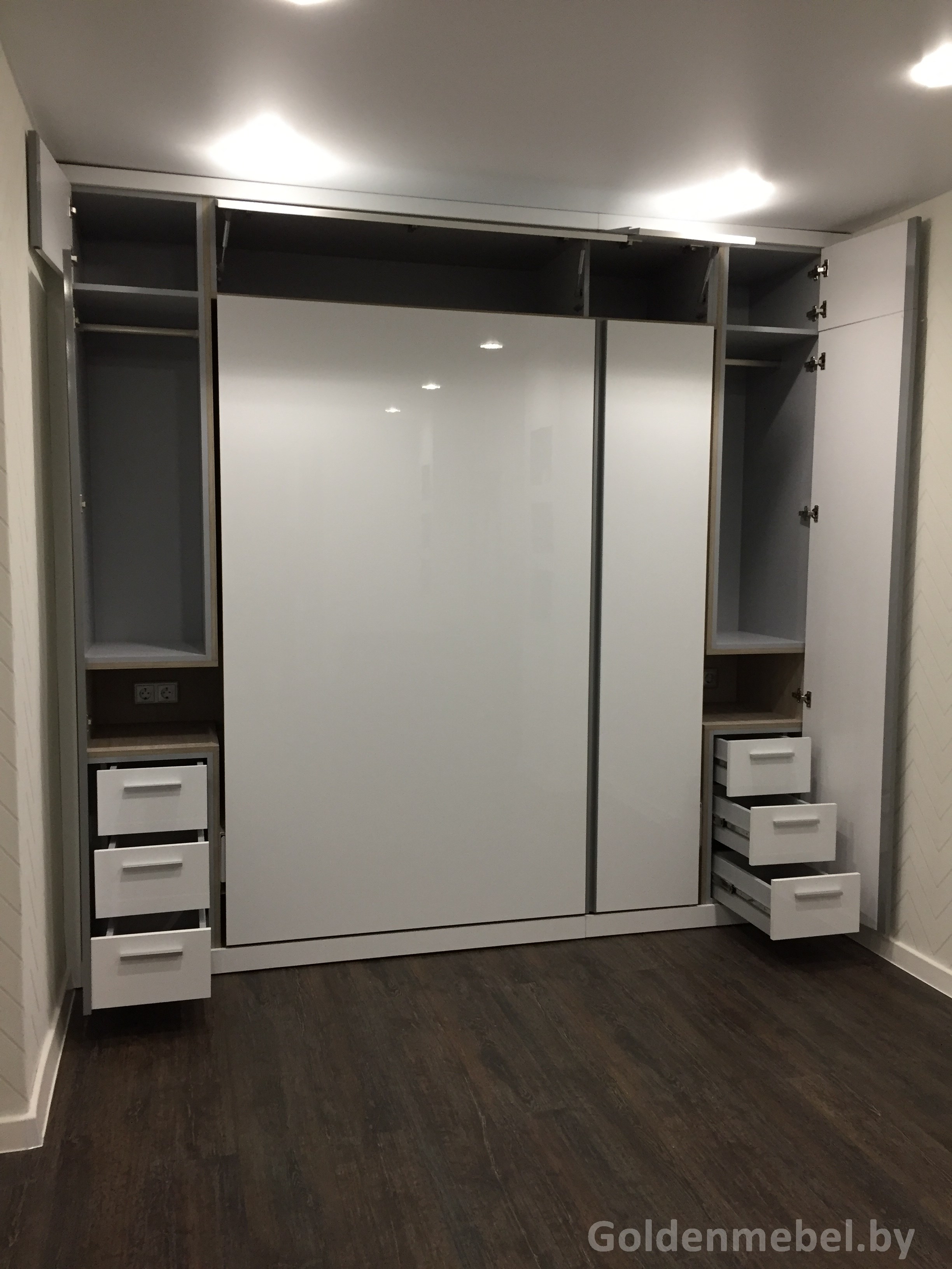 Мебель-трансформер со шкафом-кроватью горизонтального сложения.
