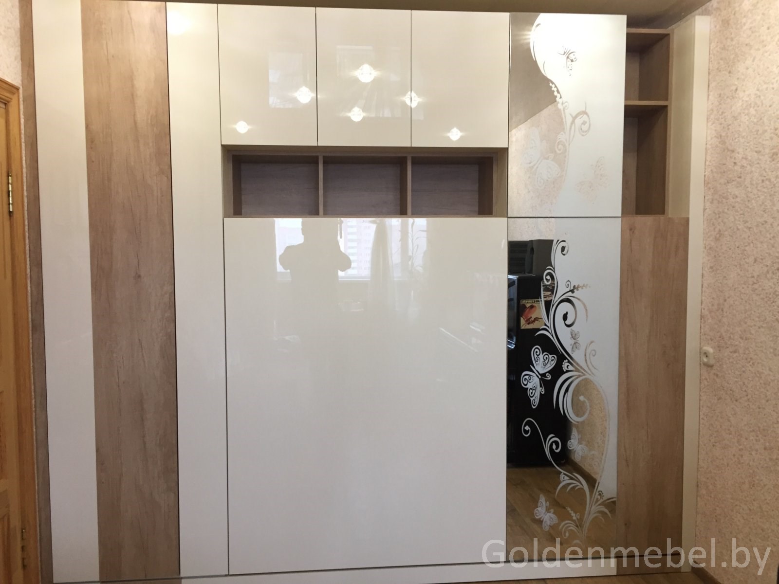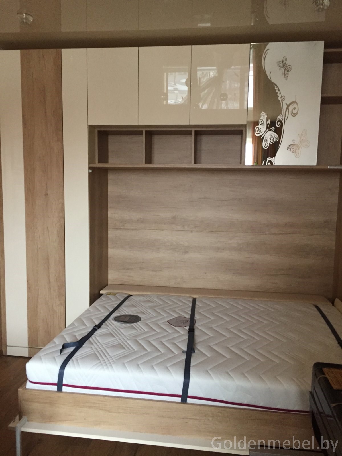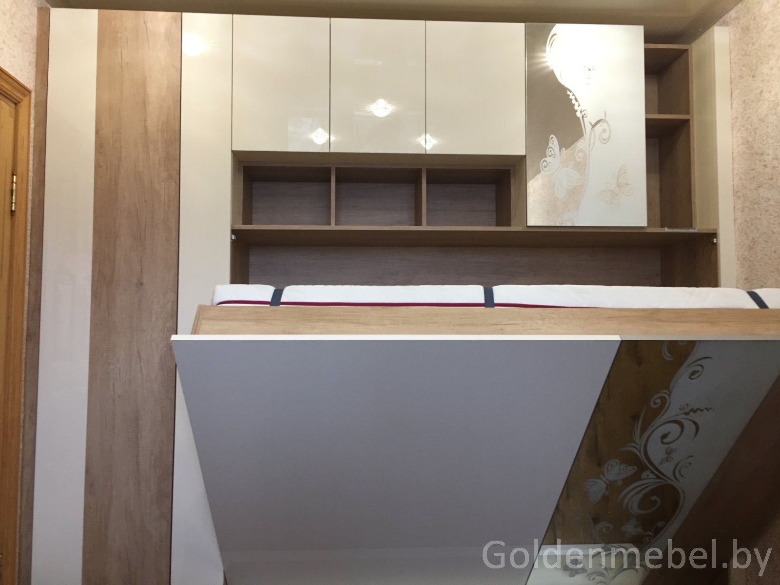 Встроенный шкаф кровать с гравировкой