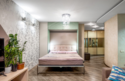 Мебель-трансформер со шкафом-кроватью горизонтального сложения. Включает шкаф, зоны хранения, диван и консоль под TV.