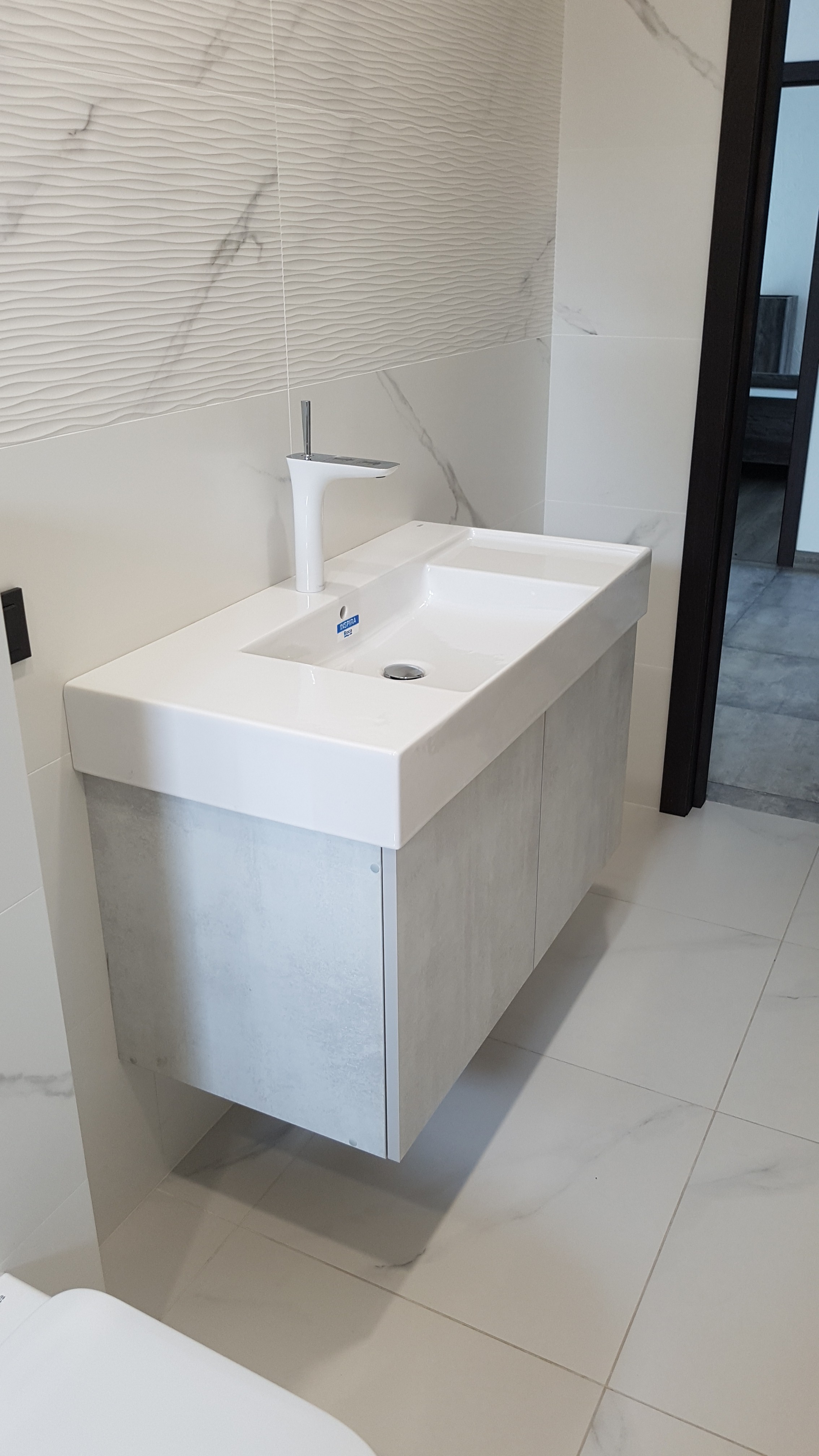 Удобные ручки на фасадах, материал тумбы EGGER.