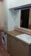 код 115067Оснащена выдвижными ящика, полкой и нишей для стиральной машины. Может дополняться навесным шкафчиком.