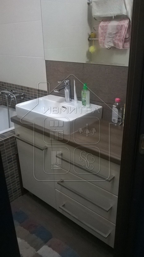 Тумба со столешницей из натурального дерева в ванную