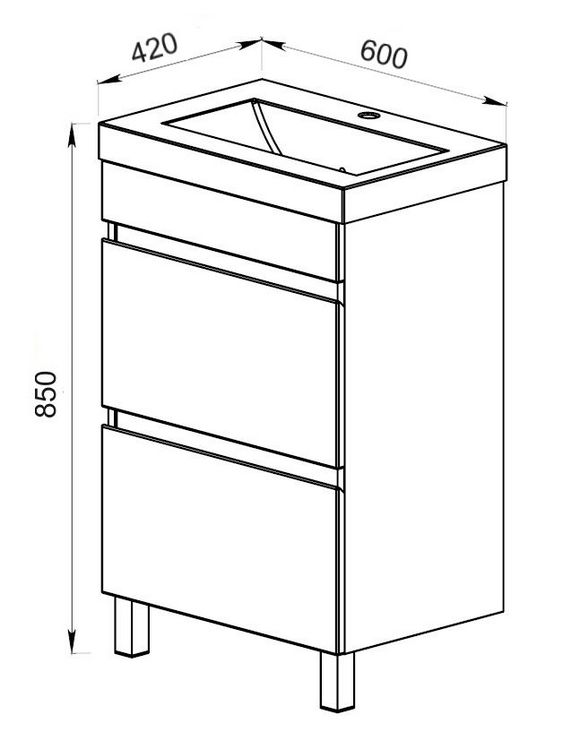 2) Um.02.60.1 Умывальник Бергамо-N60 меб. с/о белый 1с с креплением