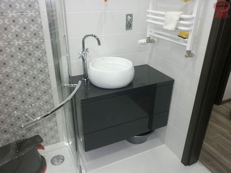 Стильная тумба для ванной комнаты отлично подойдет для различных стилей интерьера ванн. Минималистическая конструкция включает в себя несколько выдвижных ящиков, в которых можно без труда разместить все необходимые вещи и принадлежности. Сверху тумбы устанавливается чаша умывальника. Глянцевый фасад способствует зрительному расширению пространства.