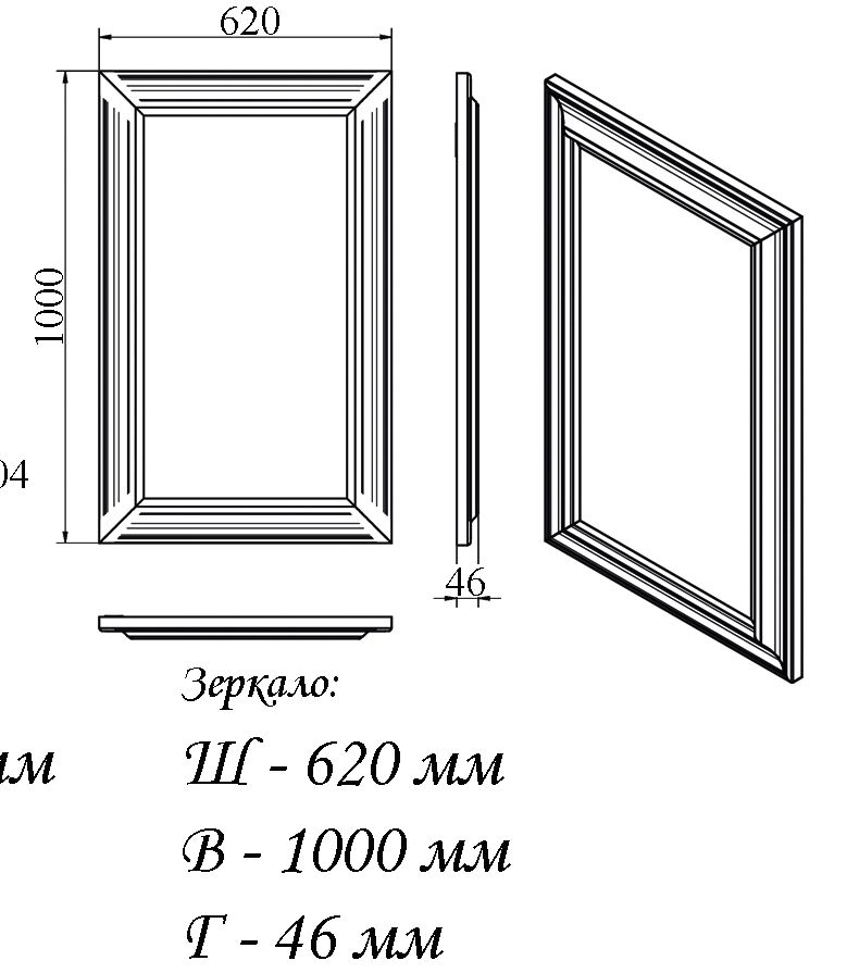 Зеркало: (ш) 1080 х (в) 800 х (г) 46 мм
