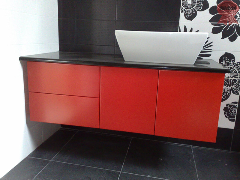 Яркая модель станет центральным элементом в любой ванной комнате. Красный цвет фасада придает конструкции исключительную оригинальность. Настенное крепление позволяет освободить дополнительное пространство под тумбой. Модель имеет несколько выдвижных ящиков и полок для хранения различных принадлежностей для ванной.