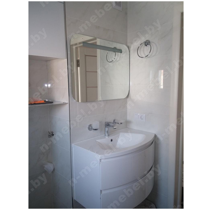 Тумба в белом матовом корпусе с большой толщиной стенок.